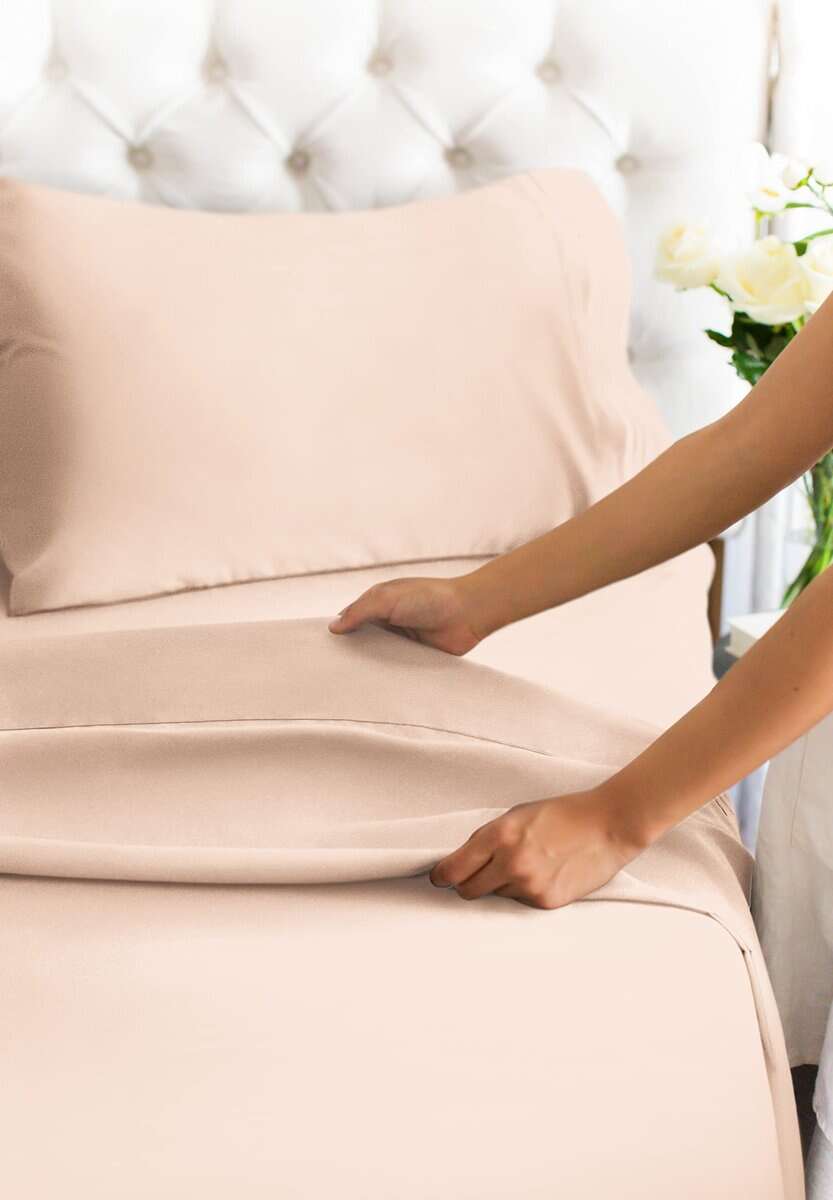 Juego de sábanas Queen Size de 4 piezas – -Crema Rosa