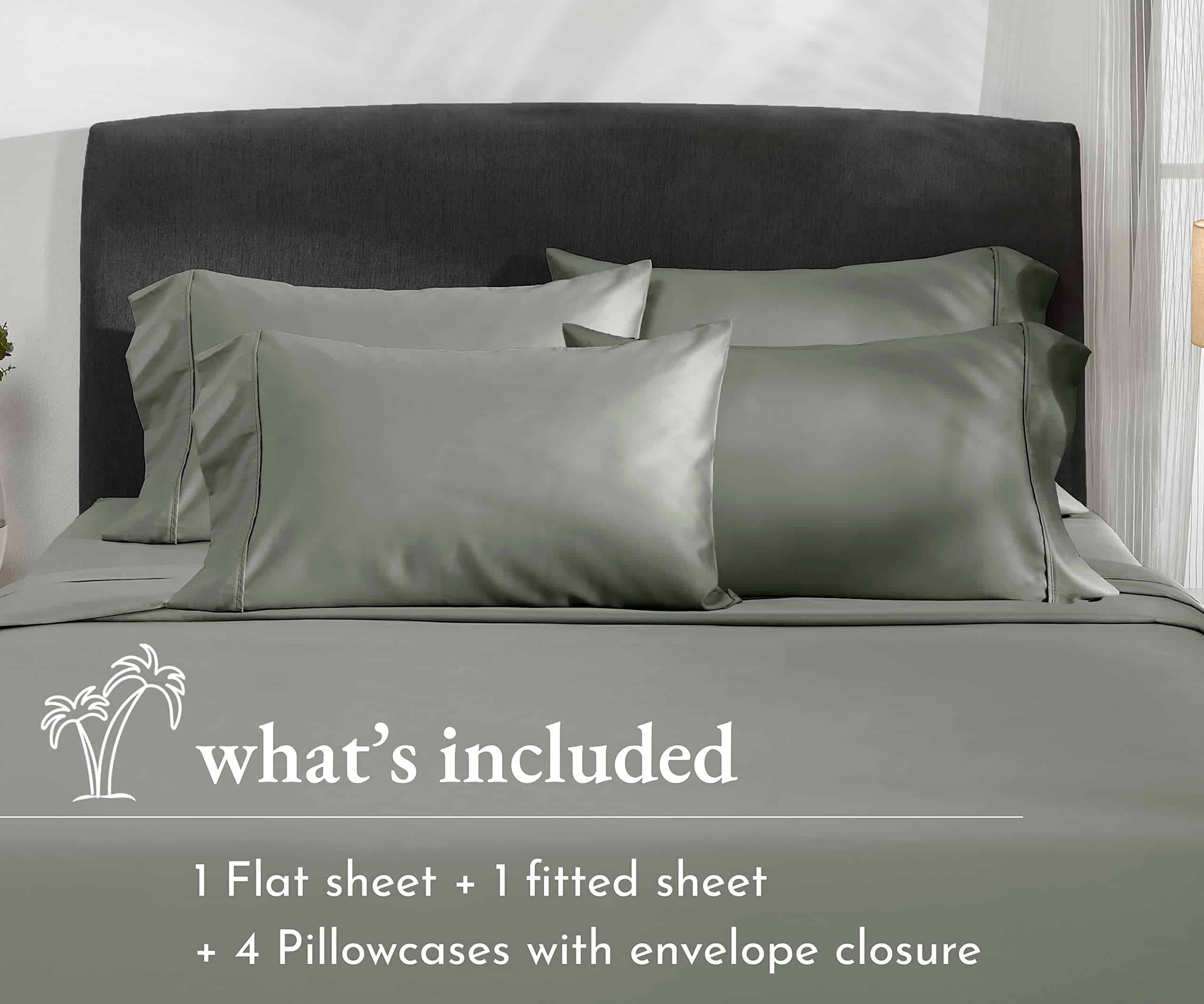 Disfruta de la comodidad y el lujo con este juego de sábanas Queen Size de California Design Den. Fabricadas con algodón 100% de 400 hilos, estas sábanas cuentan con un tejido de satén refrescante que te mantendrá fresco durante la noche. Los bolsillos profundos garantizan un ajuste perfecto en tu colchón. Este juego incluye 1 sábana bajera, 1 sábana encimera y 4 fundas de almohada, todo en un elegante color Gris Pizarra.
