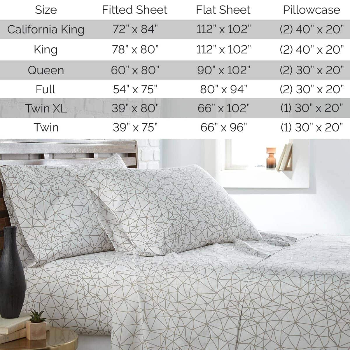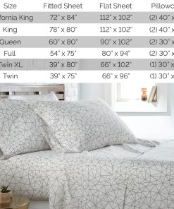 1. Tamaño Queen: Incluye 1 sábana bajera de bolsillo extra profundo completamente elástica (60 in x 80 in – se ajusta a un colchón de hasta 14 pulgadas), 1 sábana plana (90″ x 102″) y DOS fundas de almohada estándar (20″ x 30″) con cierre tipo sobre para esconder bordes de almohadas.
