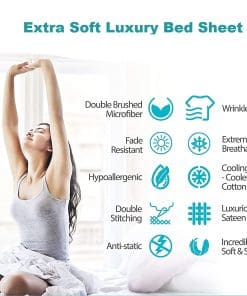 3. Juego de sábanas Queen Size de lujo de 4 piezas – 1 sábana plana 90″x102″, 1 sábana ajustable 60″x80″x15″ y 2 fundas de almohada 20″x30″. Bolsillos profundos que se ajustan a colchones de hasta 15″ de profundidad con elástico alrededor de la sábana ajustable. ¡Estas sábanas se ajustan y sujetan mejor que cualquier otro juego de sábanas! El juego de sábanas Queen está diseñado para adaptarse a casi todos los colchones con una profundidad que no exceda los 15″. Con elasticidad añadida y elástico duradero, la sábana ajustable está diseñada para permanecer ajustada y pegada a tu colchón.