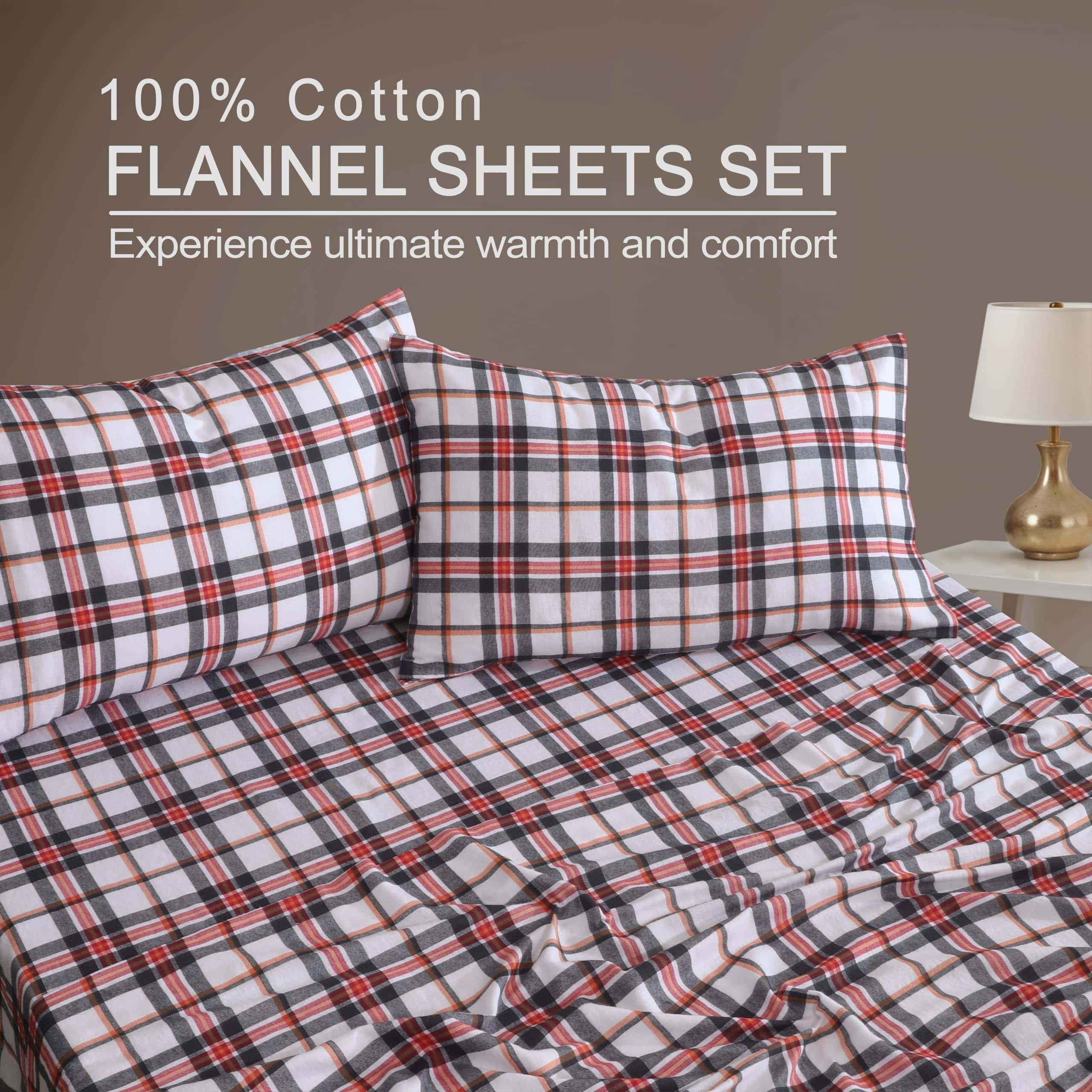 Crafted from 100% Double Brushed Cotton Flannel, This Queen size sheet set delivers exceptional softness and warmth, offering a velvety touch perfect for chilly nights. Enjoy unmatched comfort and a cozy sleep experience, making it an ideal choice for colder seasons. These Flannel Queen Sheets offer cozy warmth while staying breathable and moisture-wicking, making them ideal for all-season comfort. Experience luxurious softness with a velvety touch that enhances coziness, delivering a plush feel perfect for cool winter nights. Crafted with deep pockets, These Queen flannel sheets are designed to resist pilling and fading, maintaining their softness and vibrant color wash after wash. Made with high-quality craftsmanship, they offer lasting durability even with regular, everyday use. These 4-Pieces Cotton Flannel Queen Sheet Set combines style and function, available in a range of colors to suit any decor. The set includes a Deep-Pocket Fitted Sheet (80″ x 60″) with 18″ stretch, 1 Flat Sheet (90″ x 102″), Two Standard Pillowcases (20″ x 30″) for a complete, cozy look. Designed for hassle-free maintenance, These Queen Flannel Sheets are machine washable and retain their vibrant color and softness after each wash. Crafted to resist shrinkage and wear, they stay cozy and fresh with minimal effort-just toss in the machine for a like new feel every time.