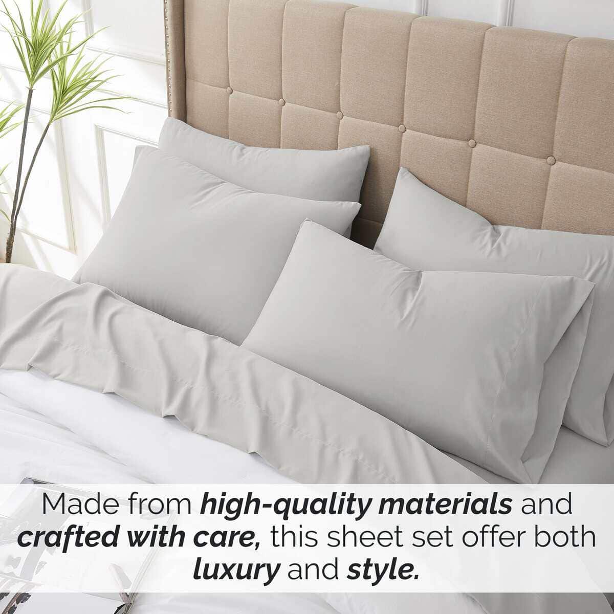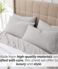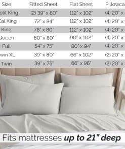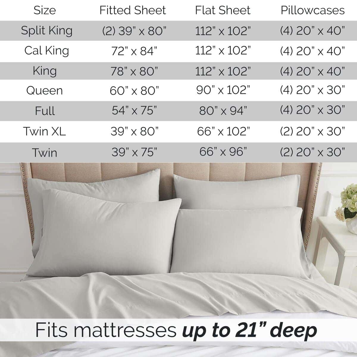 5. Juego de Sábanas de Bolsillo Profundo para Cama Queen de 6 Piezas: (1) Sábana Ajustable de 60″ de ancho x 80″ de largo x 21″ de profundidad; (1) Sábana Plana extragrande de 90″ de ancho x 102″ de largo; (4) Fundas de Almohada de 20″ de ancho x 30″ de largo