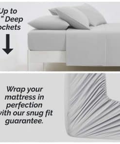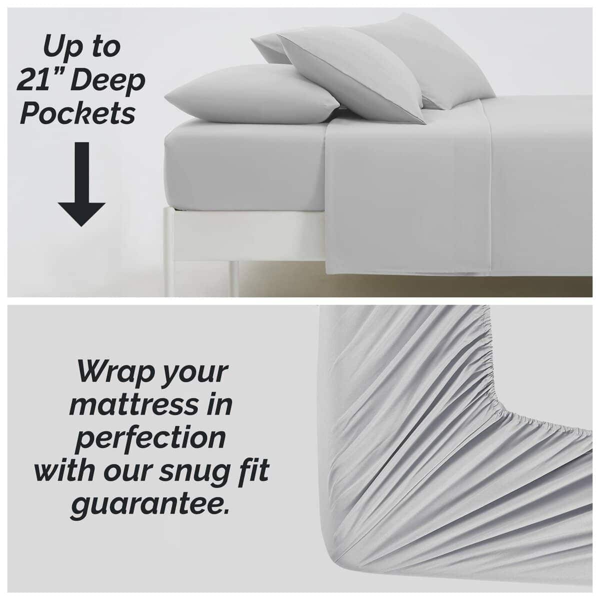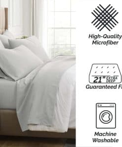 2. Juego de Sábanas Queen de Bolsillo Profundo: La sábana ajustable queen de 21″ de bolsillo profundo tiene elástico resistente alrededor de todo el dobladillo para mantenerse sujeta en colchones y toppers gruesos, incluidos colchones con almohadillas, colchones euro-top, toppers de espuma. No más deslizamientos o desmontajes.