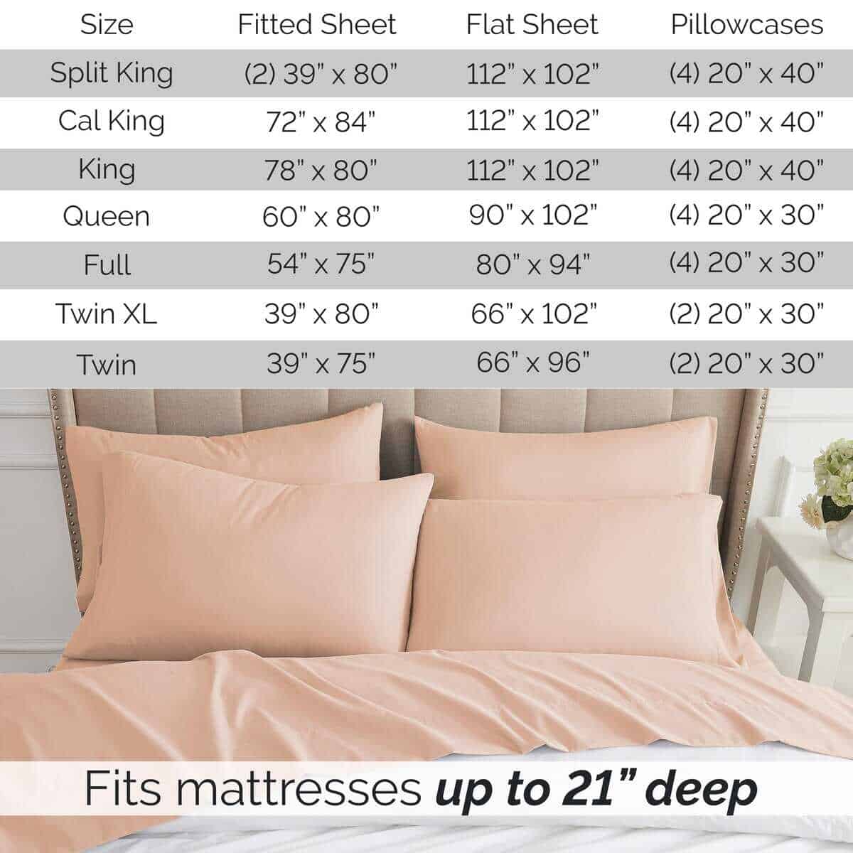 5. JUEGO DE SÁBANAS DE BOLSILLO PROFUNDO TAMAÑO QUEEN DE 6 PIEZAS INCLUYE: (1) Sábana bajera 60″ de ancho x 80″ de largo x 21″ de profundo; (1) Sábana plana extragrande 90″ de ancho x 102″ de largo; (4) Fundas de almohadas 20″ de ancho x 30″ de largo