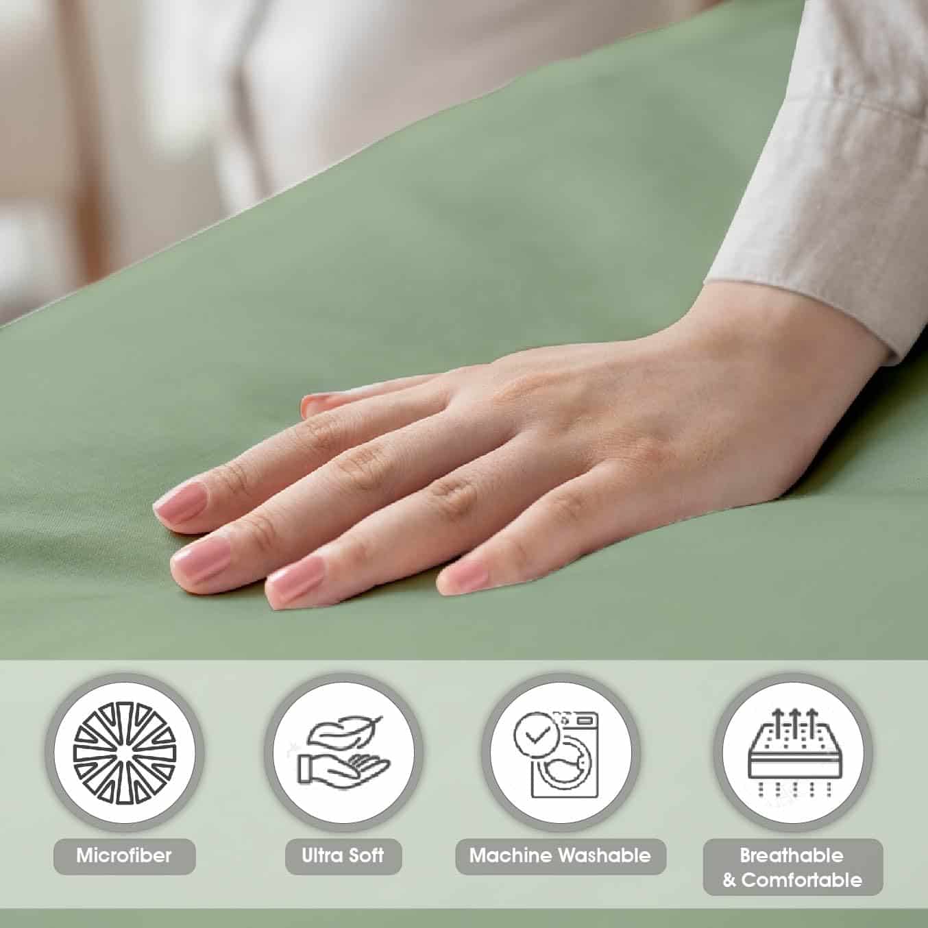 3. MICROFIBRA CEPILLADA – La tela de microfibra cepillada hace que el juego de sábanas sea excepcionalmente suave, duradero y perfecto para un sueño profundo y acogedor. El material de microfibra está procesado para hacerlo resistente a la contracción y decoloración, lo que aumenta la durabilidad y resistencia de la ropa de cama.