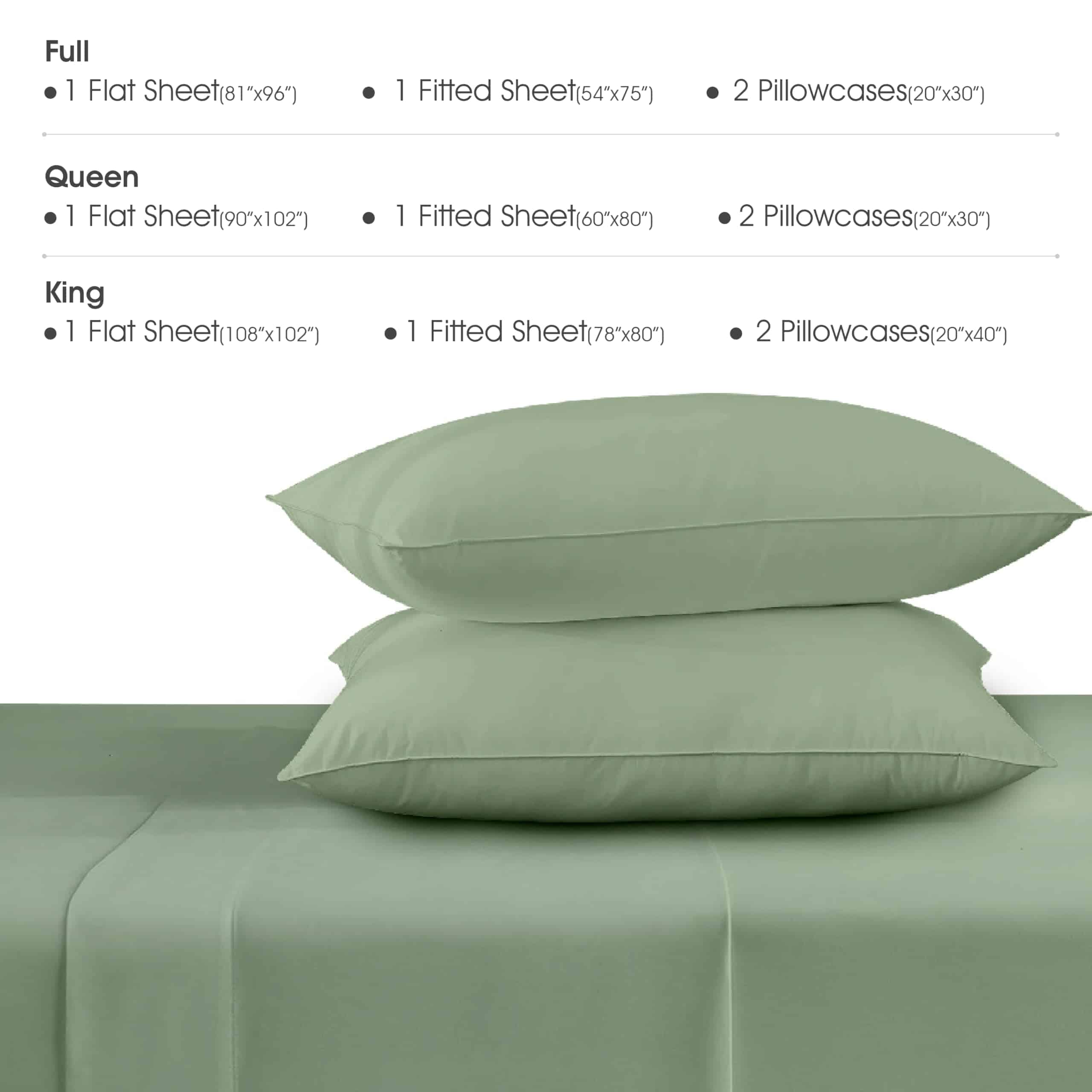 Juego de sábanas QUEENSBAY para cama King, -Verde Salvia