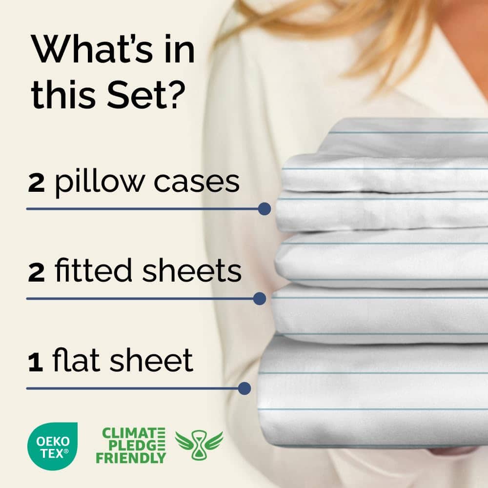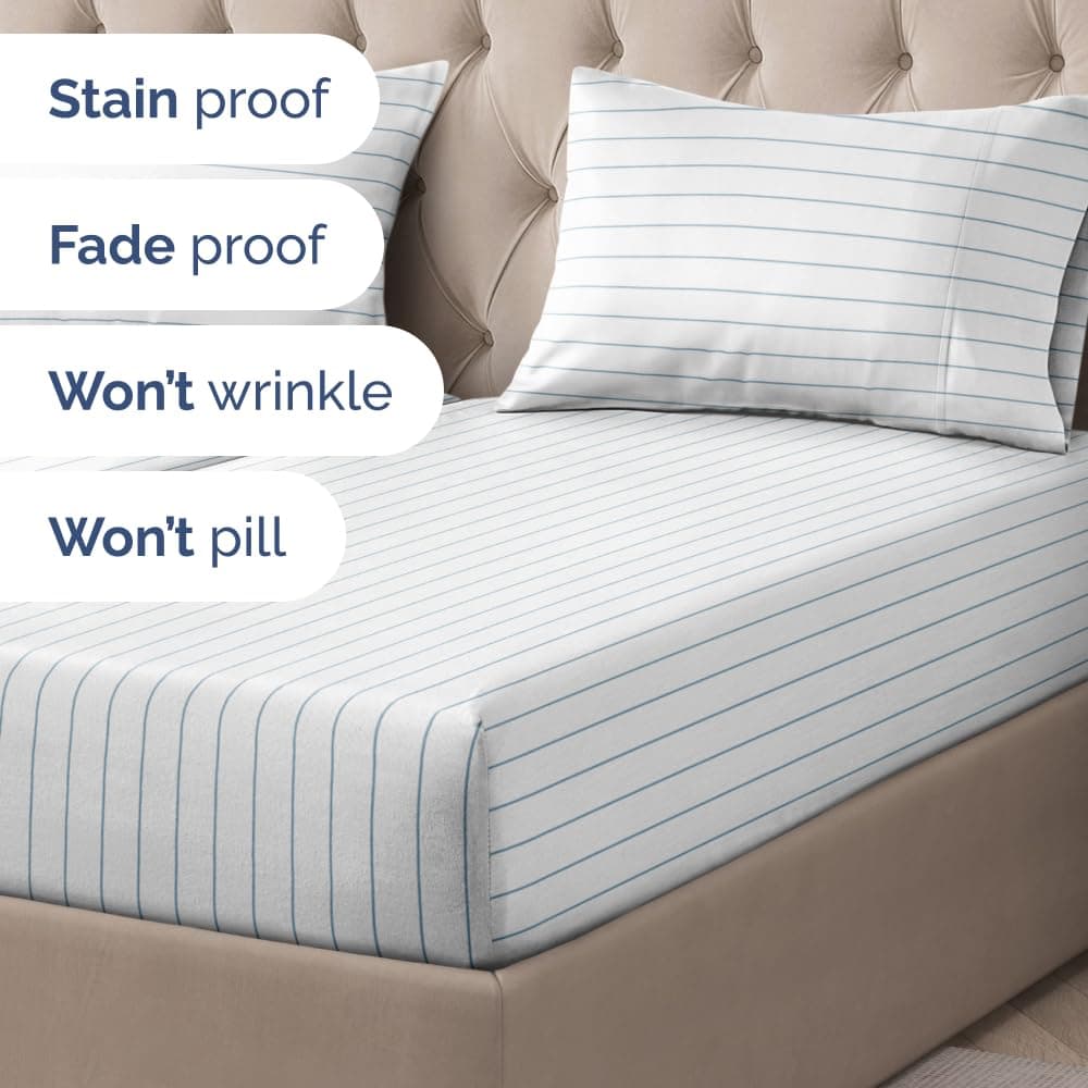 Juego de Sábanas Rayadas Azul Cielo de 5 Piezas para Cama