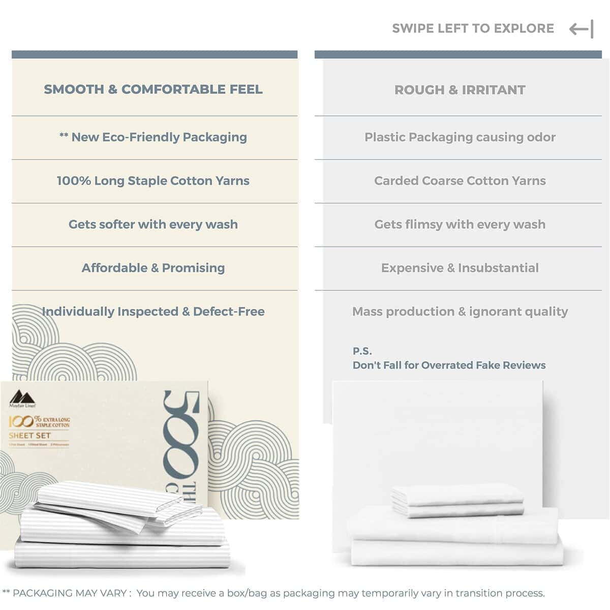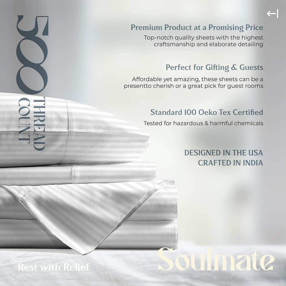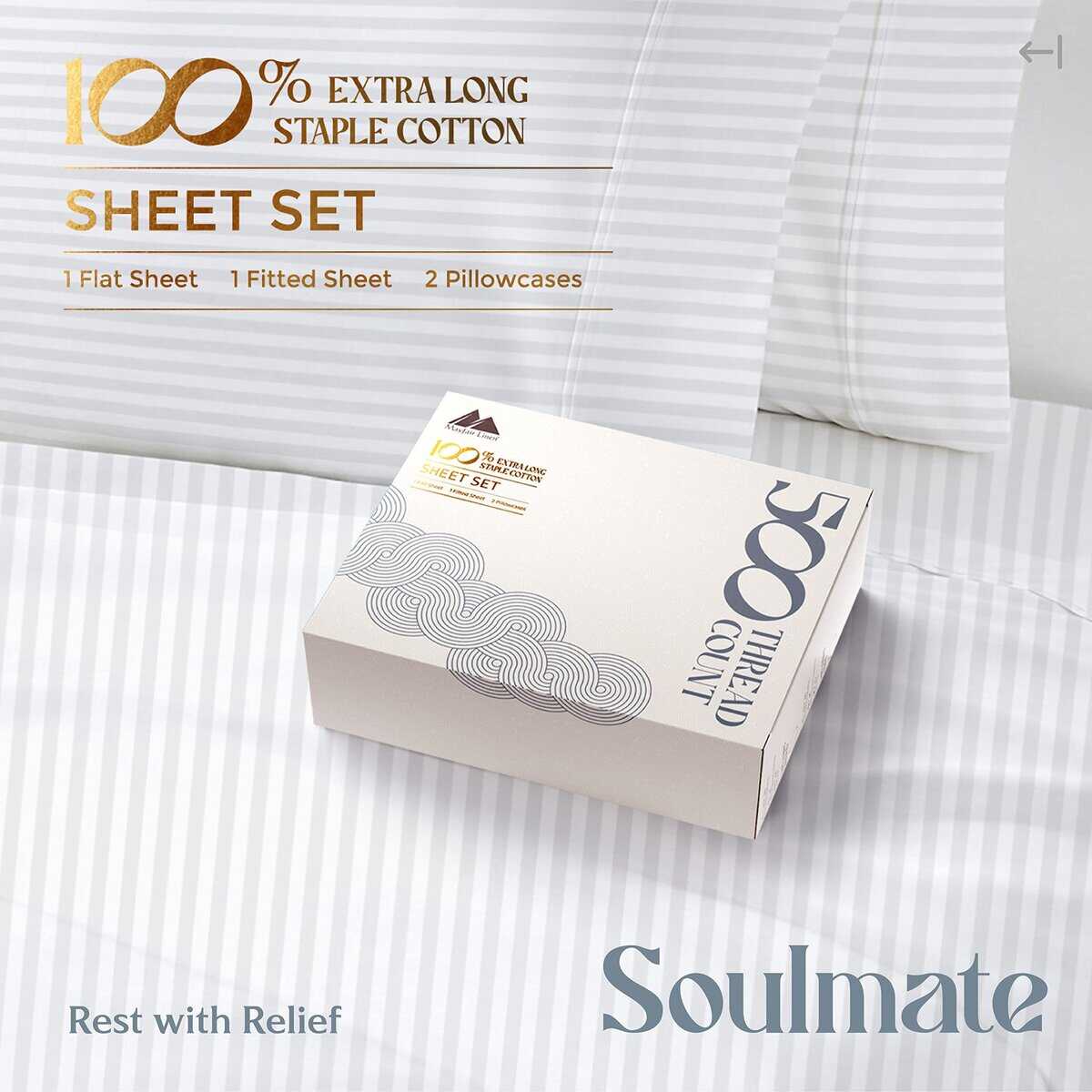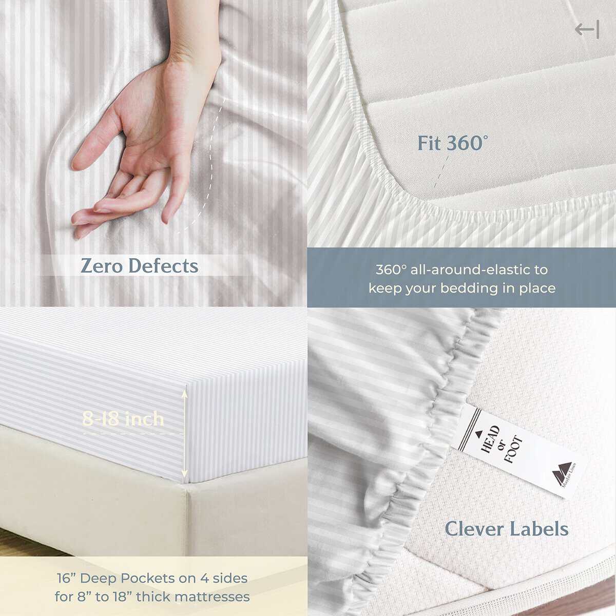 Este juego de sábanas rayadas de Mayfair Linen está hecho con 100% algodón de fibra larga para brindarte la máxima suavidad y durabilidad. Con un tejido de sateen de 500 hilos, estas sábanas son más suaves y fuertes que otras sábanas de algodón del mismo recuento de hilos. La mercerización del tejido le da un brillo adicional y una textura sedosa, mientras que mejora la profundidad del color para evitar decoloraciones y formación de pelusas en el lavado. Las sábanas son ligeras y frescas, perfectas para personas que duermen caliente. El juego de sábanas incluye 1 sábana plana, 1 sábana ajustable con bolsillos profundos y 2 fundas de almohada estándar. Las sábanas ajustables cuentan con un elástico 360 para sujetar firmemente al colchón sin necesidad de correas adicionales. Este juego de sábanas es ideal para personas con pieles sensibles, ya que está hecho con algodón 100% ecológico y certificado por STANDARD 100 de OEKO-TEX sin productos químicos nocivos. Sorprende a tus seres queridos con este lujoso juego de sábanas como regalo en cualquier ocasión especial.