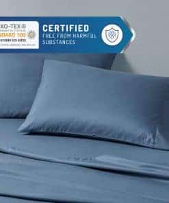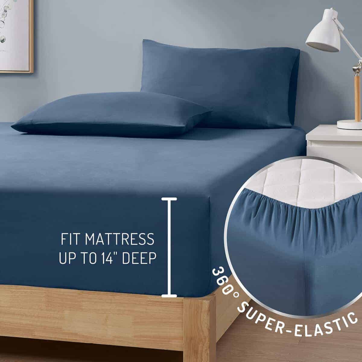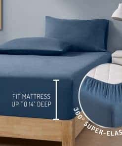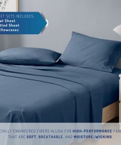 5. El paquete incluye: 1 sábana plana (81″ x 96″), 1 sábana ajustable (54″ x 75″), y 2 fundas de almohada (20″ x 30″). Nuestra sábana ajustable incluida cubrirá la mayoría de las profundidades de colchón para que las esquinas NO SE SALGAN, creando una ropa de cama suave y sin arrugas que te invita a relajarte en ella, todas las noches