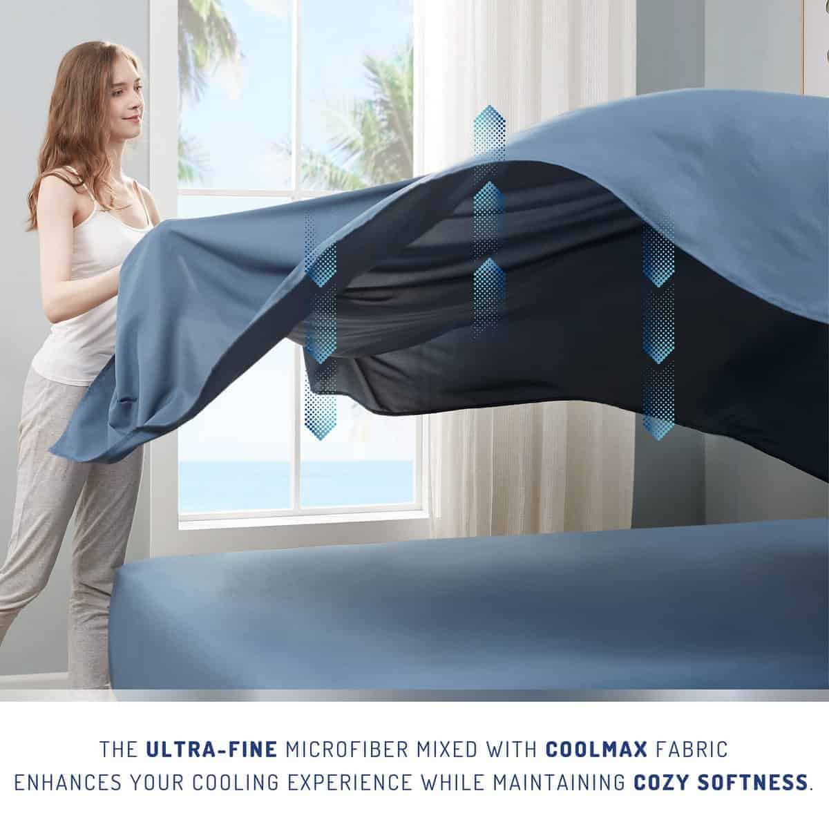 2. TECNOLOGÍA COOLMAX SMART: Nuestra tela original de rendimiento de absorción que aleja la humedad de la piel. La microfibra ultrafina mezclada con la tela Coolmax mejora tu experiencia de enfriamiento al tiempo que mantiene la comodidad y suavidad. Una gran ayuda para las personas con sudores nocturnos durante el clima cálido.