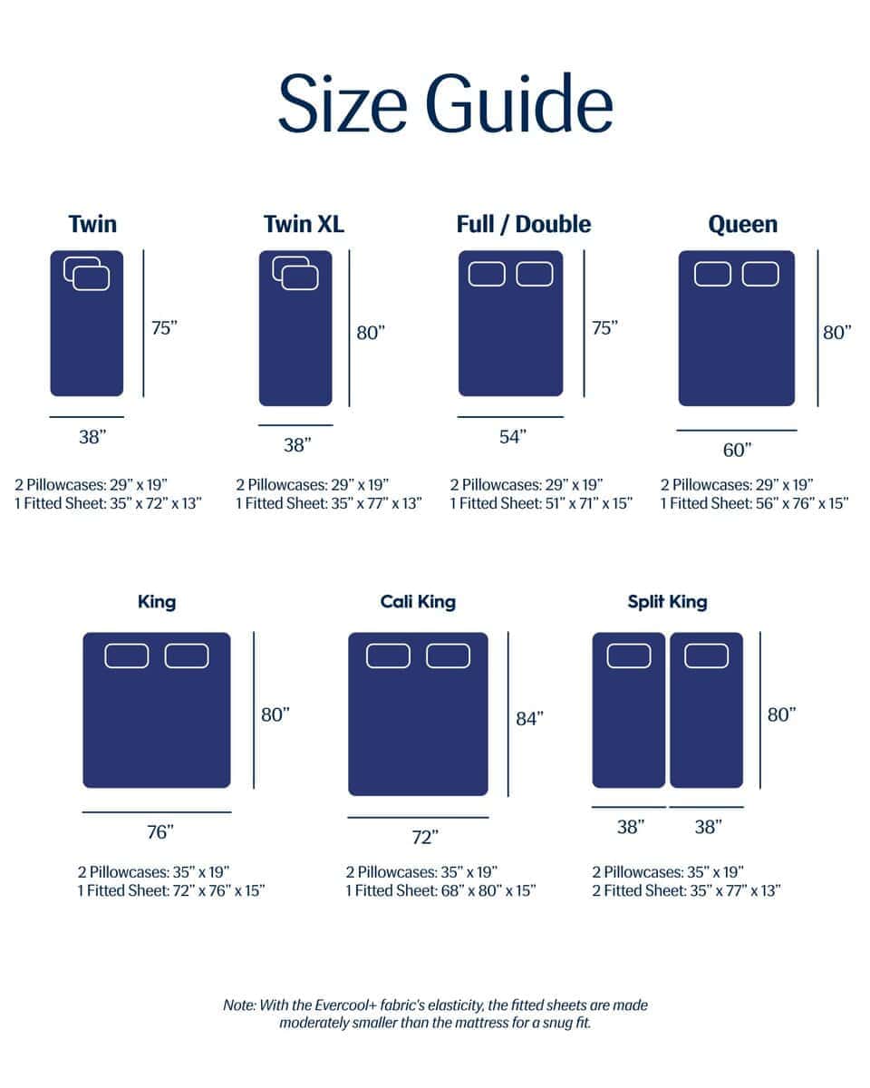 4. Incluye una sábana ajustable de tamaño King (72x76x15 pulgadas) de enfriamiento: Juego de sábanas ultra transpirables Evercool+ para mejorar cualquier cama; Sábana ajustable de bolsillo profundo para colchones de hasta 18 pulgadas de grosor con pestañas laterales largas y cortas para una instalación sencilla; Banda elástica extra ancha alrededor del borde asegura un ajuste seguro que se mantiene toda la noche.
