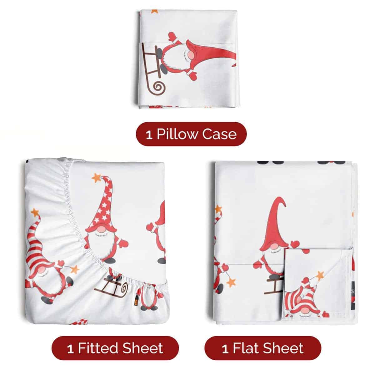 Juego de sábanas rojas Twin XL de Navidad con gnomos