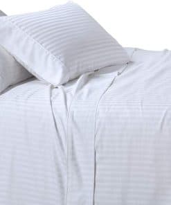 4. SÁBANA PLANA Y FUNDAS DE ALMOHADA: Nuestra suave sábana plana y las fundas de almohada están hechas con 4″ de dobladillo y ribete para un aspecto simple pero elegante.
