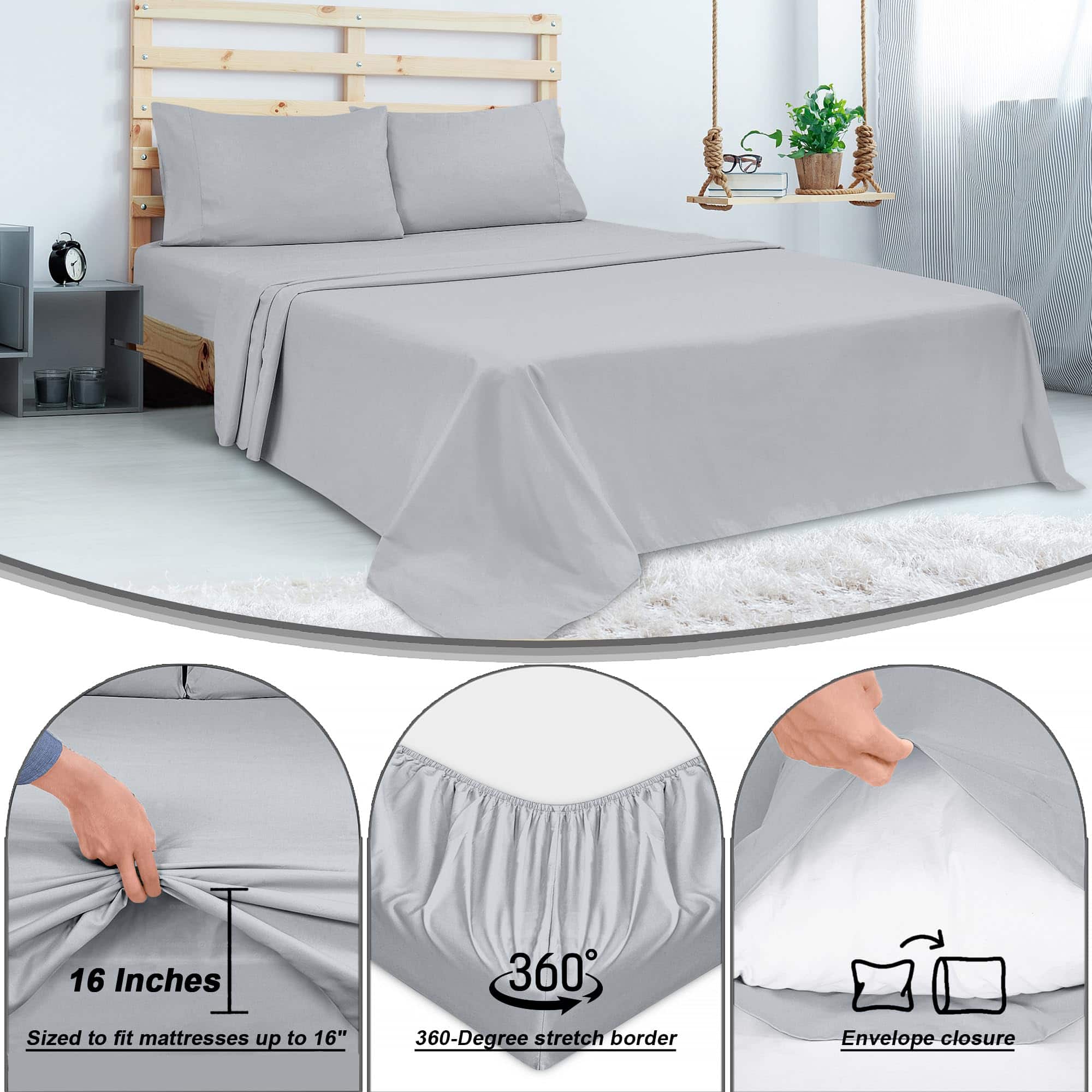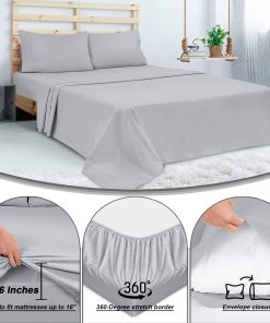 «Una buena noche de sueño está a solo un momento de distancia» Los juegos de sábanas ROYALE LINENS de 300 hilos están fabricados con la mejor calidad de algodón peinado al 100%. Lo que los hace transpirables, cómodos y acogedores. El juego de sábanas de Royale Linen viene en 4 tamaños diferentes: individual, matrimonial, queen y king. El juego de sábanas individuales/twin incluye: 1 sábana plana de 66×96 pulgadas, 1 sábana ajustable de 39×75 pulgadas con caída de 16 pulgadas y 1 funda de almohada de 20×30 pulgadas con dobladillo de 4 pulgadas y cierre de sobre. Las sábanas individuales/twin de Royale Linens son transpirables, frescas y súper sedosas. El tejido está procesado para hacerlo resistente a la contracción y a la decoloración. Perfecto para dormitorio, habitación de invitados, habitación infantil, hoteles. Excelente idea de regalo para hombres y mujeres en el Día de San Valentín, el Día de la Madre, el Día del Padre y Navidad. Nuestros juegos de sábanas de 300 hilos están certificados Standard 100 por Oeko Tex. Según las directrices, estos productos son probados para detectar sustancias dañinas y se producen de manera respetuosa con el medio ambiente y socialmente responsable. También son sostenibles de acuerdo con las directrices de Oeko Tex. Instrucciones de cuidado: Se recomienda lavar a mano o a máquina con agua fría y un detergente suave para extender la vida del juego y mantener su comodidad. Lavado a altas temperaturas provoca que el microfibra se expanda, lo que libera la suciedad atrapada y otras partículas diminutas. Si desea lavar a mano el juego, considere usar un cepillo de cerdas suaves para enjuagar completamente.