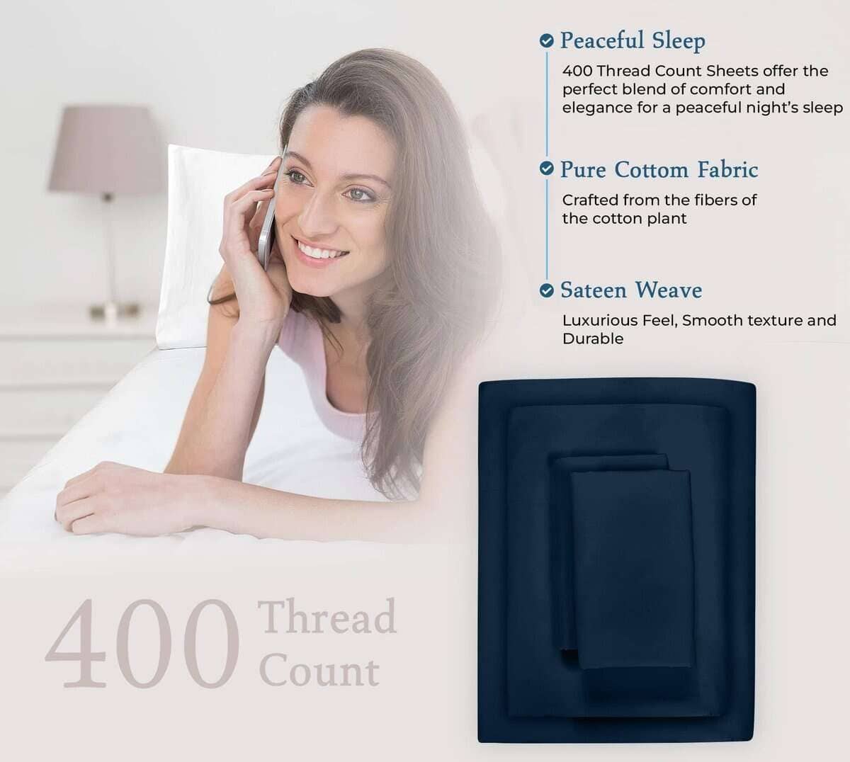 3. LUJO ASEQUIBLE: Las sábanas de algodón de 400 hilos de tamaño gemelo de Royales Linens son transpirables, frescas y súper suaves y sedosas. La tela está procesada para hacerla resistente a la contracción y a la decoloración. Perfecto para dormitorios, habitaciones de invitados, habitaciones infantiles, hoteles. Excelente idea de regalo para hombres y mujeres en el Día de San Valentín, el Día de la Madre, el Día del Padre y Navidad.