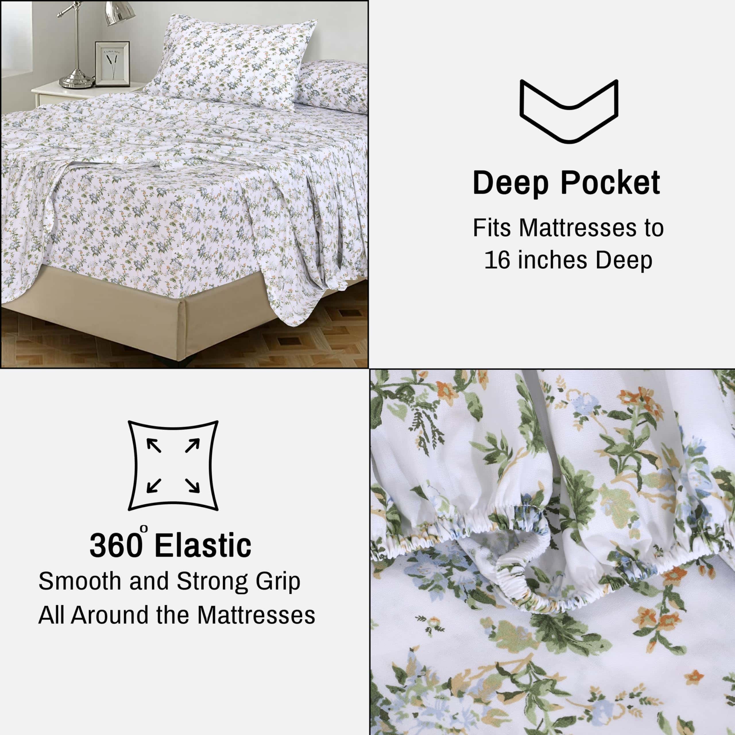 3. Durabilidad y fácil cuidado: Nuestras sábanas de algodón 100 por ciento están hechas con tejido de trama percal que mejora la resistencia del tejido. Nuestras sábanas son lavables a máquina y requieren un bajo mantenimiento.