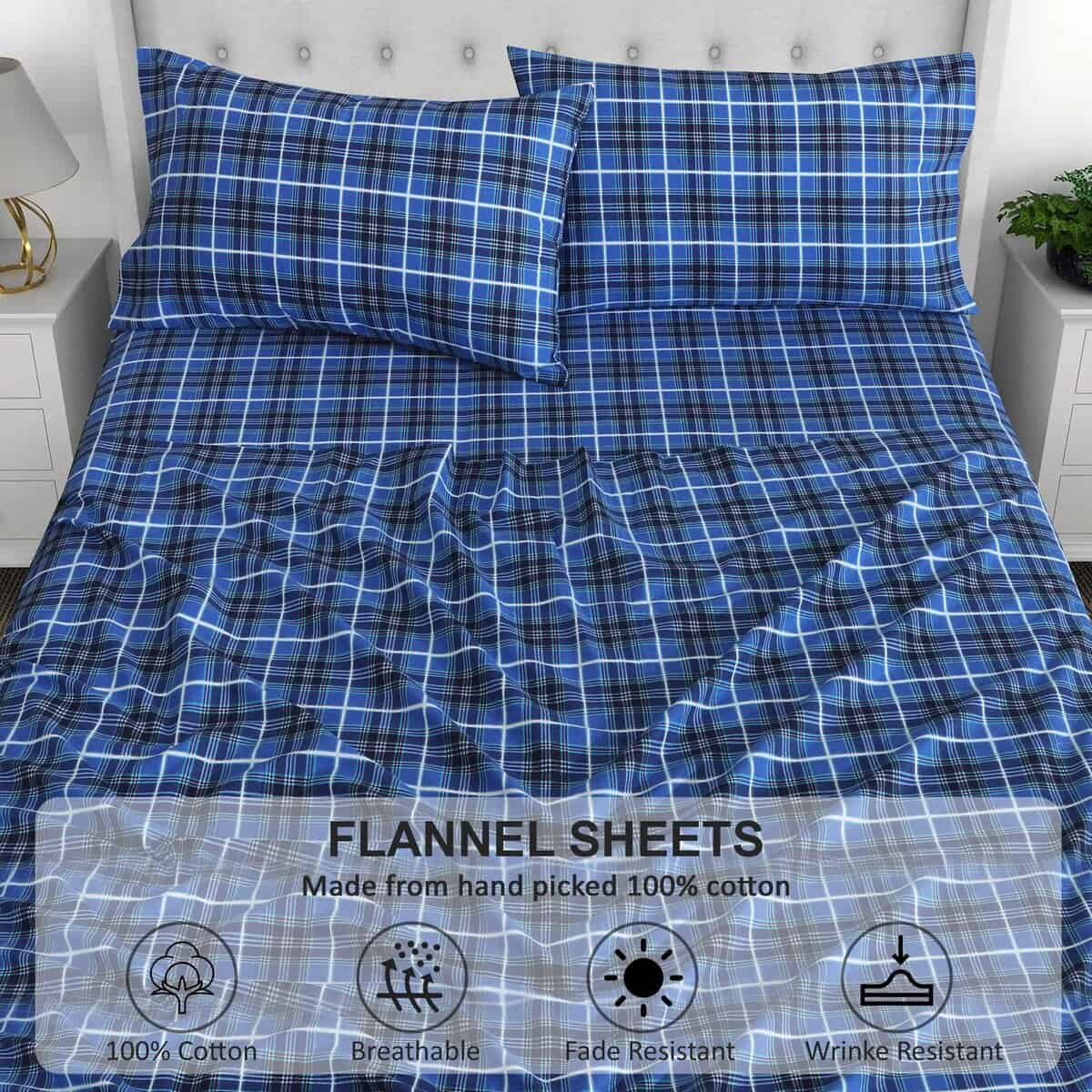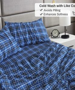 1. Visión del producto: Nuestras sábanas de franela de 100% algodón, hechas con tela de 170 GSM, cuentan con un acabado doble cepillado para obtener una sensación suave aterciopelada. Nuestro juego de sábanas proporciona una experiencia de sueño de lujo inigualable al tiempo que mejora la comodidad y la belleza duradera de su cama. 2. Extra suavidad: A pesar de su acogedoridad, estos juegos de sábanas king de california ligeros siguen siendo transpirables, permitiendo la circulación del aire para que te sientas cómodo mientras duermes. El diseño de nuestros juegos de sabanas alcanza el equilibrio perfecto entre la calidez y la ventilación. 3. Construidos para durar: Nuestro juego de sábanas California King resistente a la decoloración pasa por un proceso de fabricación de 9 etapas para garantizar su durabilidad. Incluso después de varios lavados, nuestras sábanas resisten la formación de bolitas y pelusa, manteniendo su calidad con el tiempo. Disponibles en diseños versátiles y elegantes para sus seres queridos. 4. ¿Qué incluye? Nuestro juego de sabanas Cal king incluye cuatro piezas de gran tamaño. 1 sábana ajustable (102 «x 108»), 1 sábana ajustada (72 «x 84»), con un bolsillo profundo de 14 pulgadas que se adapta a colchones de hasta 16 pulgadas, y 2 fundas de almohada (20 «x 40»). 5. Tu tranquilidad: Nuestras sabanas se fabrican en una fábrica certificada por OEKO TEX para garantizar prácticas seguras y saludables tanto para los trabajadores como para la naturaleza. Siga las instrucciones de cuidado y use agua fría para lavar. Si por algún motivo desea devolver el producto, siga la política de devolución.
