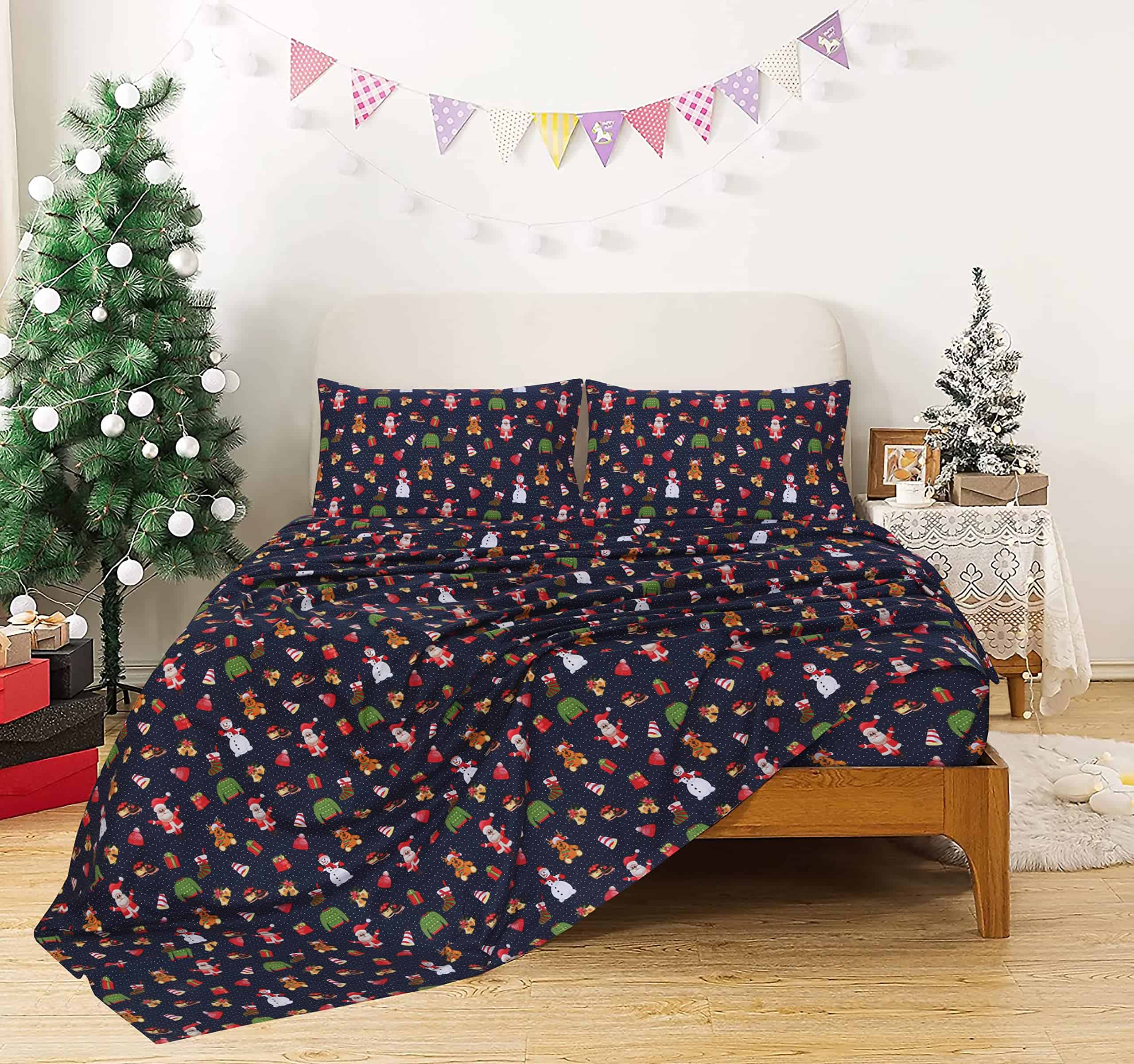 A pesar de su acogedor suavidad, estas ligeras sábanas King permanecen transpirables, permitiendo la circulación de aire para mantenerte cómodo mientras duermes. El diseño de nuestro juego de sábanas King logra el equilibrio perfecto entre calidez y ventilación. Nuestras sábanas King resistentes a la decoloración pasan por un proceso de fabricación de 9 etapas para la durabilidad. Incluso después de varios lavados, nuestras sábanas resisten la formación de bolitas y pelusas, manteniendo su calidad con el tiempo. Disponibles en diseños versátiles y elegantes para tus seres queridos. Nuestro juego de sábanas King size incluye cuatro piezas generosamente dimensionadas: 1 sábana plana (108″ x 102″), 1 sábana ajustable (78″ x 80″) con un bolsillo profundo de 16 pulgadas que se ajusta a colchones de hasta 18 pulgadas, y 2 fundas de almohada (20″ x 36″). Nuestras sábanas se fabrican en una fábrica certificada por OEKO-TEX para garantizar prácticas seguras y saludables tanto para los trabajadores como para la naturaleza. Siga las instrucciones de cuidado y use agua fría para lavar. Si por algún motivo desea devolver el producto, siga la política de devolución.
