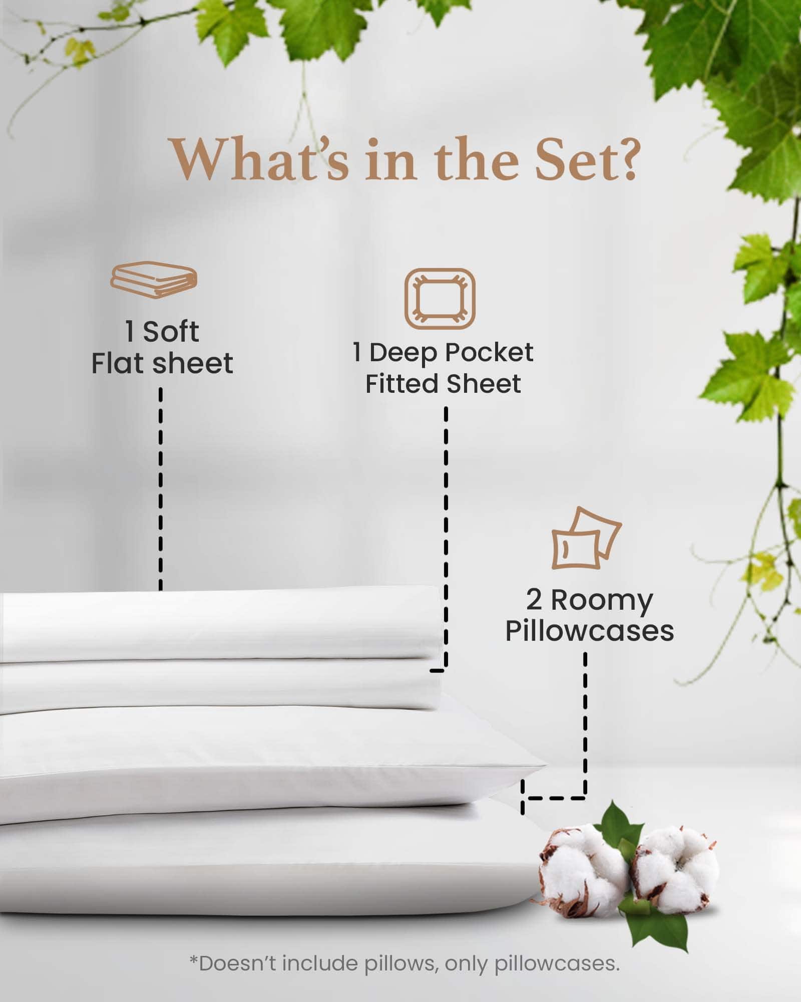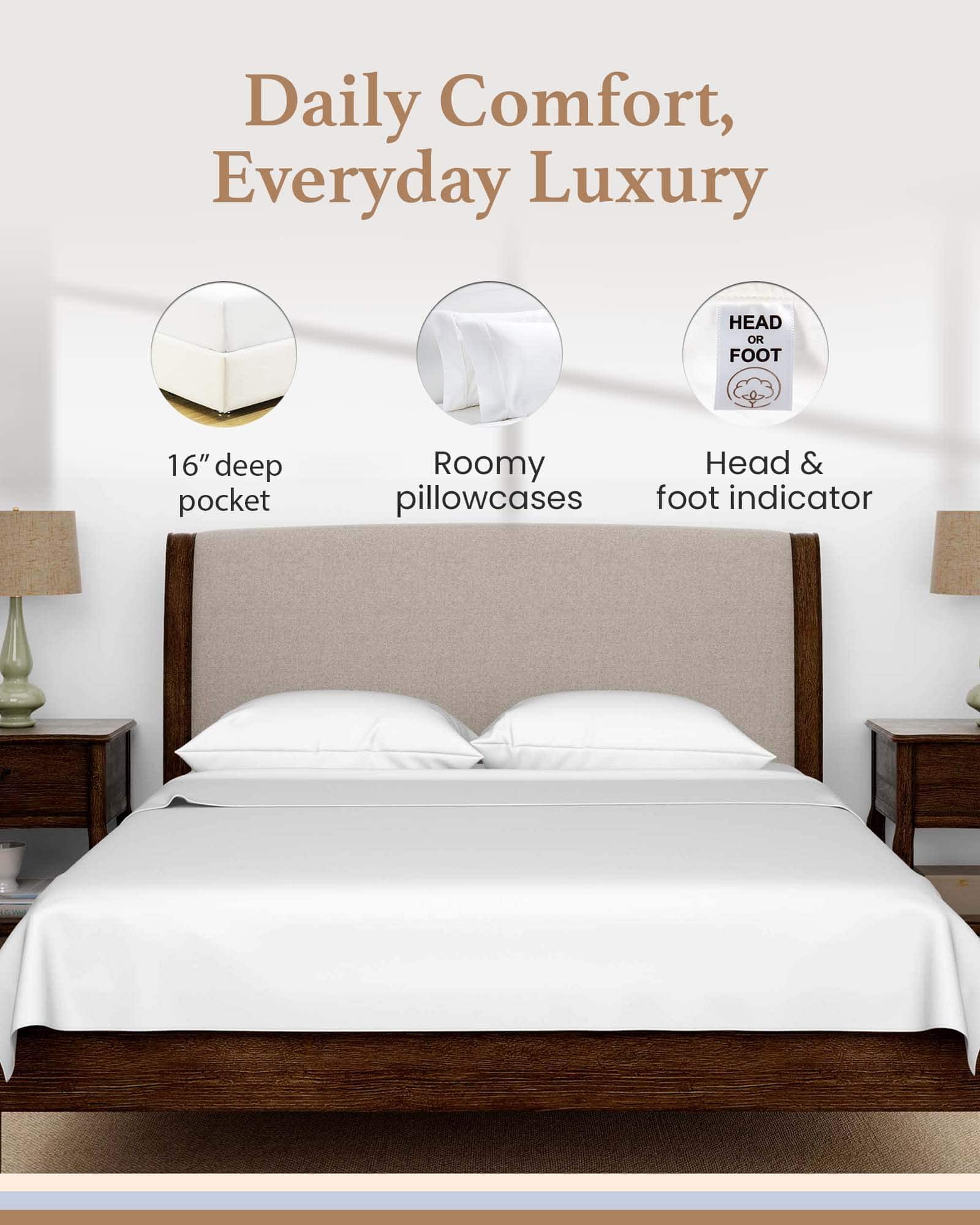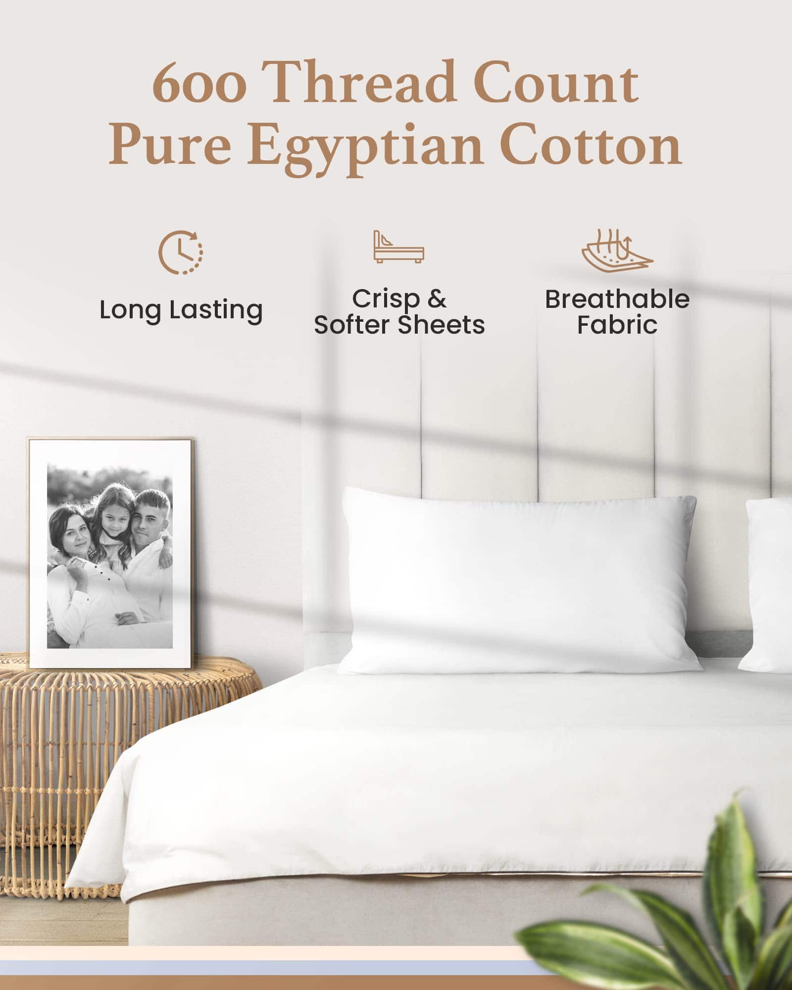 Juego de Sábanas RV Cortas 600 TC Blanco de lujo para Cama
