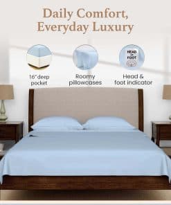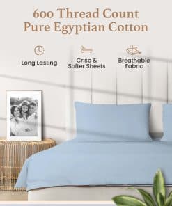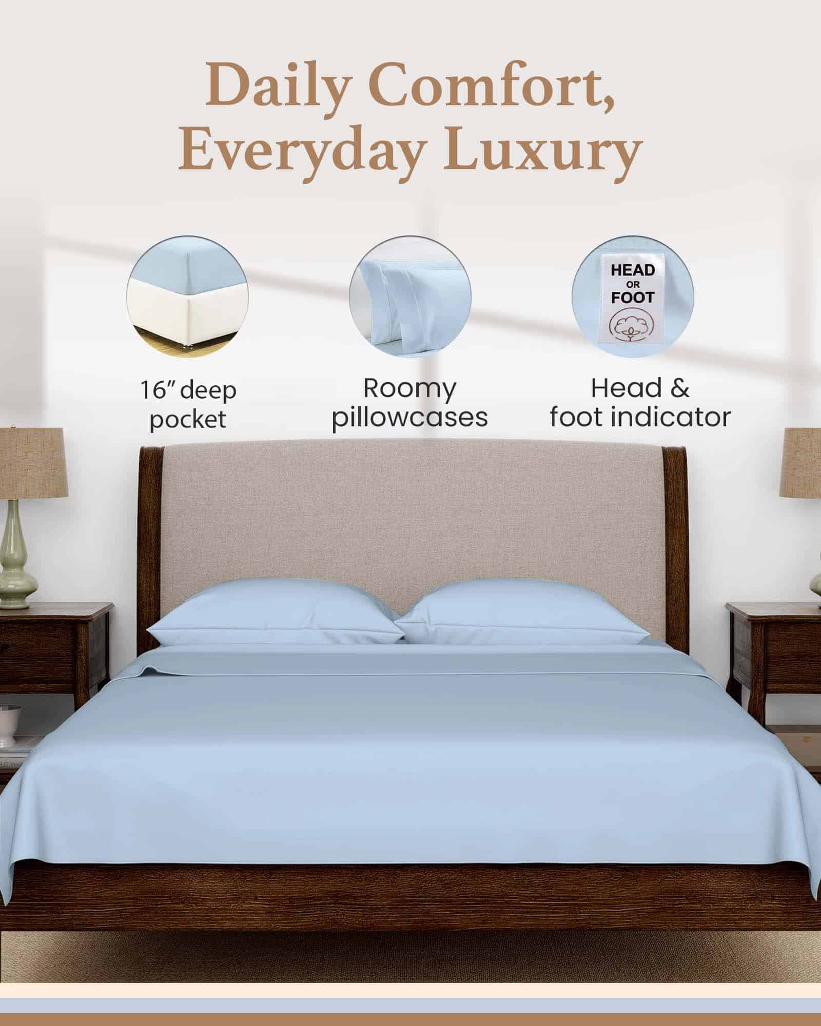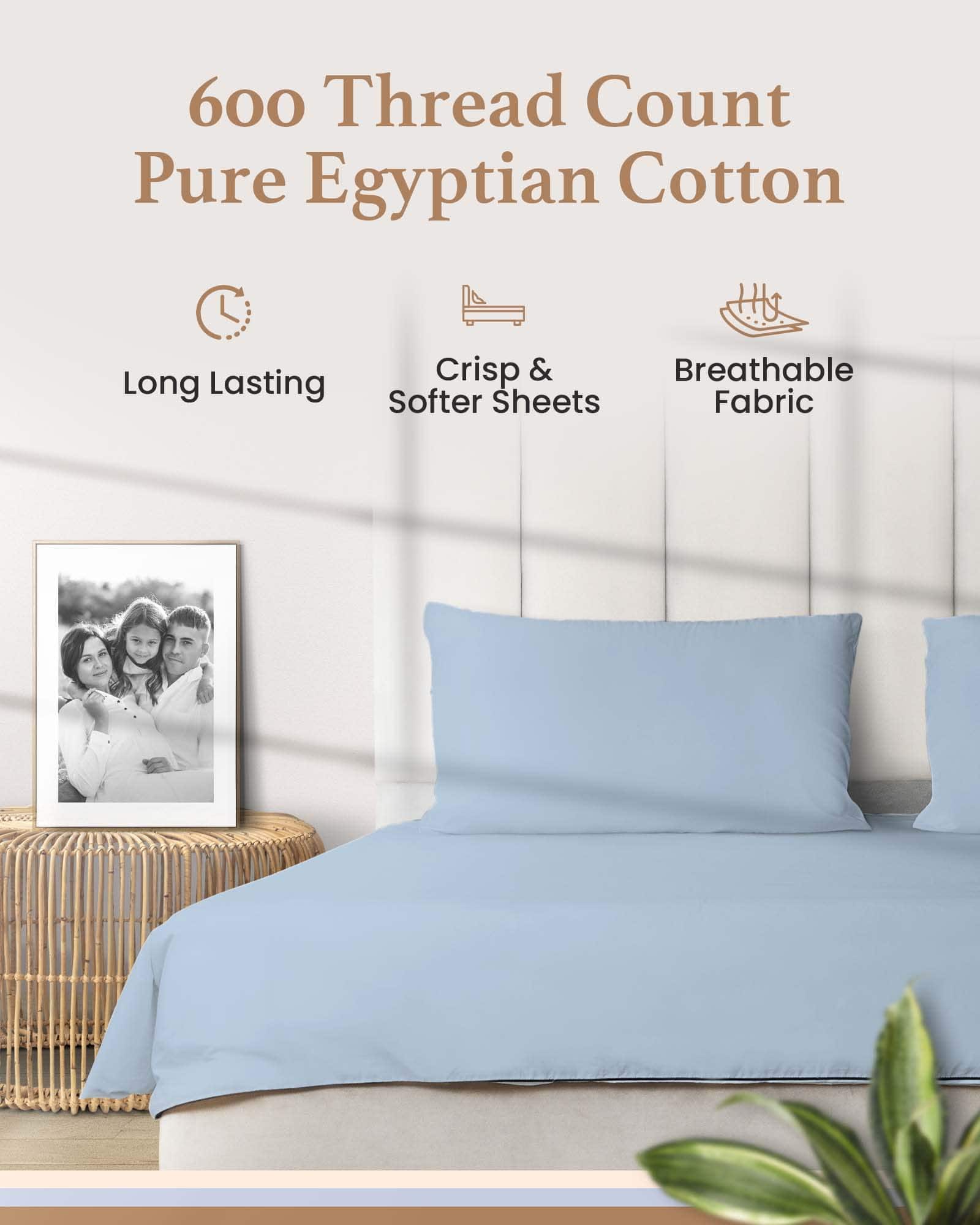 Juego de sábanas RV cortas King de 600 hilos en azul claro,