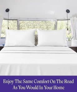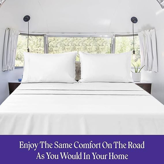 1. JUEGOS DE SÁBANAS 100% ALGODÓN EGIPCIO 800 hilos de algodón egipcio de fibra extralarga, una tela conocida por su atractivo lujoso y alta durabilidad. Nuestros juegos de sábanas están especialmente diseñados con un tejido más apretado para ser suaves y duraderos. 2. Incluye: 1 Sábana ajustable, 1 Sábana plana, 2 Fundas de almohada. 3. TAMAÑO RV-KING – 1 Sábana ajustable (72″ X 80″) (Bolsillo profundo de 15″), 1 Sábana plana (102″ X 108″) y 2 Fundas de almohada (20″ X 40″). 4. Bolsillo profundo: La sábana ajustable tiene un elástico perfecto alrededor para un ajuste ceñido a un colchón de bolsillo profundo de 15 pulgadas para mantenerse metida debajo del colchón. 5. CUIDADO Y MANTENIMIENTO FÁCILES – Lavar a máquina en ciclo suave con colores similares, no usar lejía, secar en secadora a baja temperatura, y planchar o vaporizar en caliente.