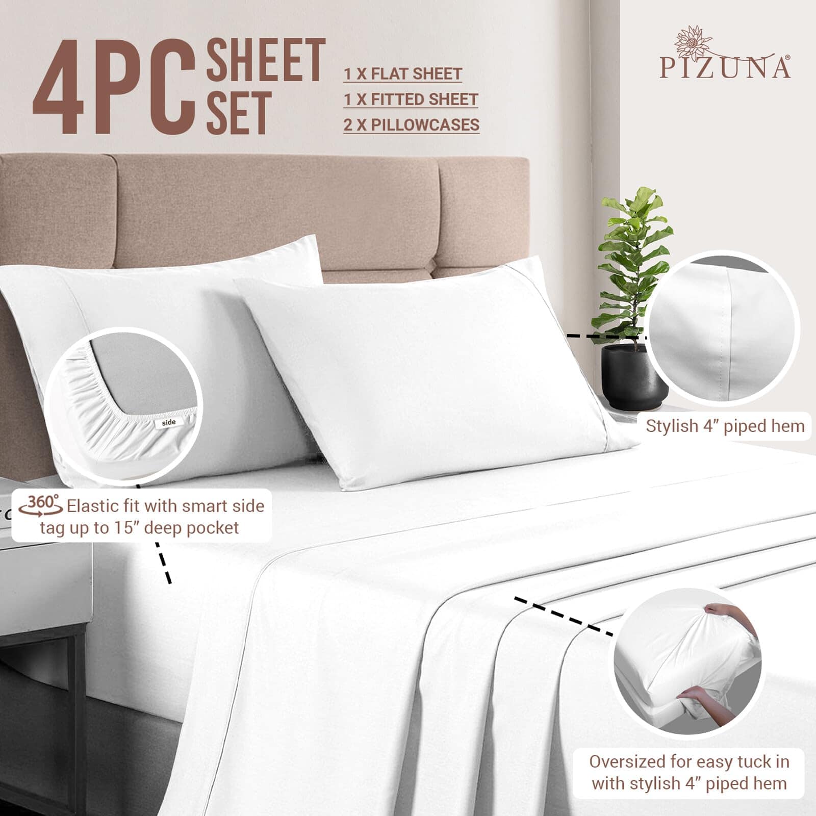 Juego de Sábanas RV Queen de 100% Algodón Puro, lujoso 400