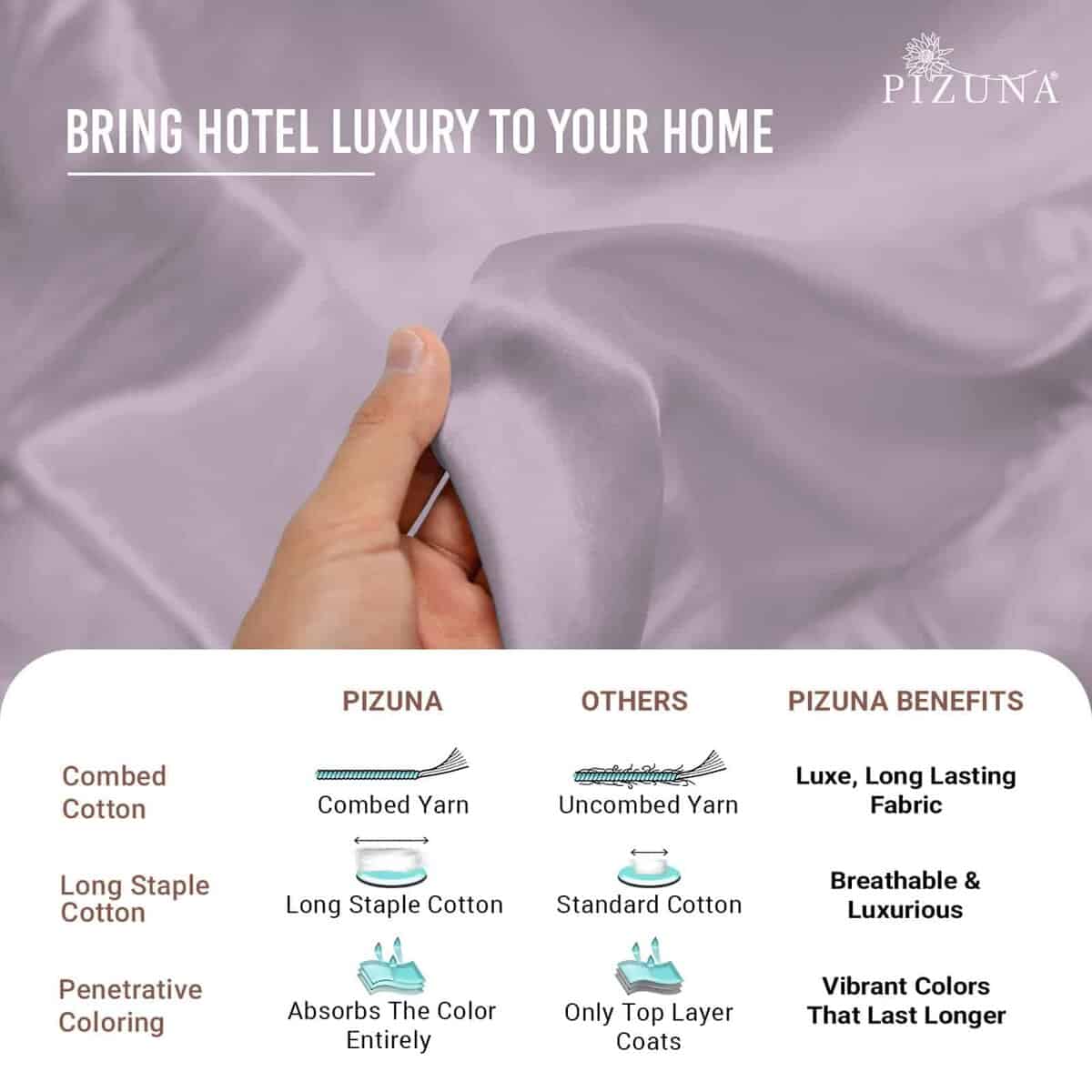 Despierta lleno de energía después de un sueño confortable en las sábanas Short Queen de 400 hilos de Pizuna. Te sentirás acogedor ya que el algodón 100% de fibra larga es de alta calidad, fresco y suave en la piel. La sábana Short Queen permite que tu piel respire de forma natural gracias a sus notables propiedades de equilibrio de temperatura. Tu habitación adquiere una apariencia lujosa con el acabado de satén de las sábanas de cama Short Queen. Con la sensación brillante del juego completo de sábanas, puedes dormir en paz manteniéndote fresco y seco.