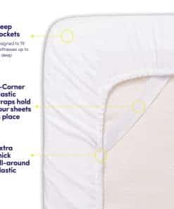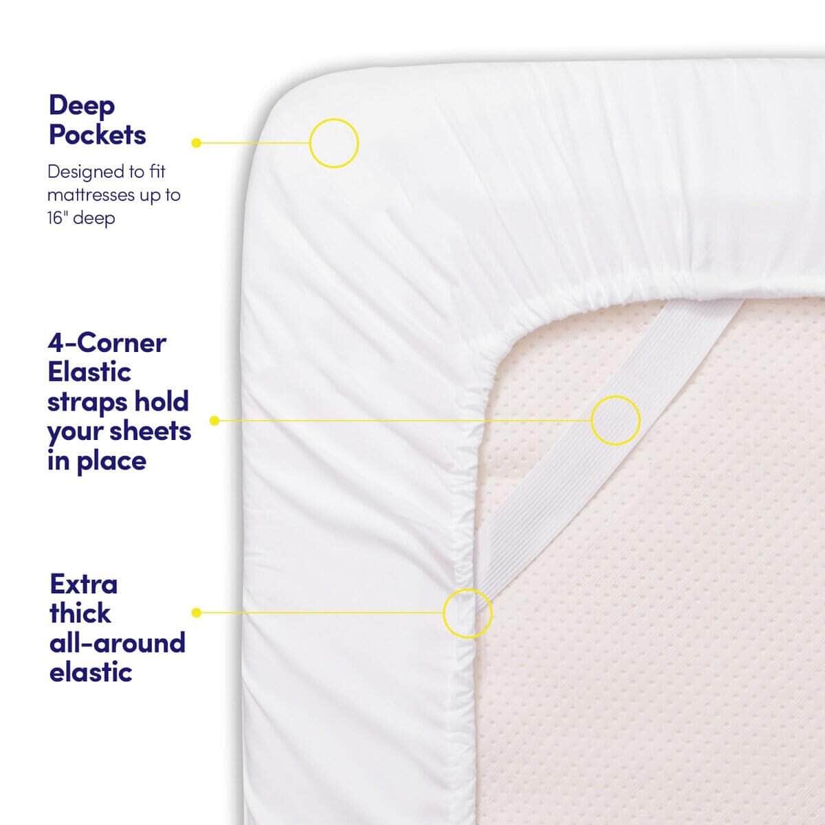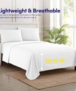 Sábanas Ajustadas Stay-Put con Correas Integradas Incrustadas ¡La solución perfecta para una cama segura y sin arrugas!n¡Di adiós a las sábanas que se deslizan y se desplazan! Nuestro juego de sábanas de lujo con correas elásticas integradas en las esquinas está diseñado para permanecer en su lugar, brindándote una superficie de descanso suave y cómoda todas las noches.nTamaños y medidas disponibles: Queen: 1 Sábana Plana (92″ x 102″), 1 Sábana Ajustada (60″ x 80″), 2 Fundas de Almohada Estándar (20″ x 30″)King: 1 Sábana Plana (102″x105″), 1 Sábana Ajustada (78″x80″), 2 Fundas de Almohada King (20″x40″)California King: 1 Sábana Plana (108″x102″), 1 Sábana Ajustada (72″x84″), 2 Fundas de Almohada King (20″x40″) Full: 1 Sábana Plana (81″x96″), 1 Sábana Ajustada (54″x75″), 2 Fundas de Almohada Estándar (20″x30″)Twin: 1 Sábana Plana (66″x96″), 1 Sábana Ajustada (39″x75″), 1 Funda de Almohada Estándar (20″x30″)Twin XL: 1 Sábana Plana (66″x102″), 1 Sábana Ajustada (39″x80″), 1 Funda de Almohada (20″x30″)RV Short Queen: 1 Sábana Plana (99″ L x 90″ An), 1 Sábana Ajustada (75″ L x 60″ An x 10″ P), 2 Fundas de Almohada (20″ x 30″)Split King: 1 Sábana Plana (102″x105″), 2 Sábanas Ajustadas (39″x80″), 2 Fundas de Almohada King (20″x40″)Perfecto para cada dormitorio: Ya sea que estés equipando un dormitorio principal, habitación de invitados, dormitorio universitario, RV o camper, estas sábanas de lujo con correas de sábana incorporadas proporcionan la combinación perfecta de confort, durabilidad y elegancia. ¡Haz clic en «Agregar al carrito» ahora y experimenta las sábanas perfectas que permanecen en su lugar hoy!