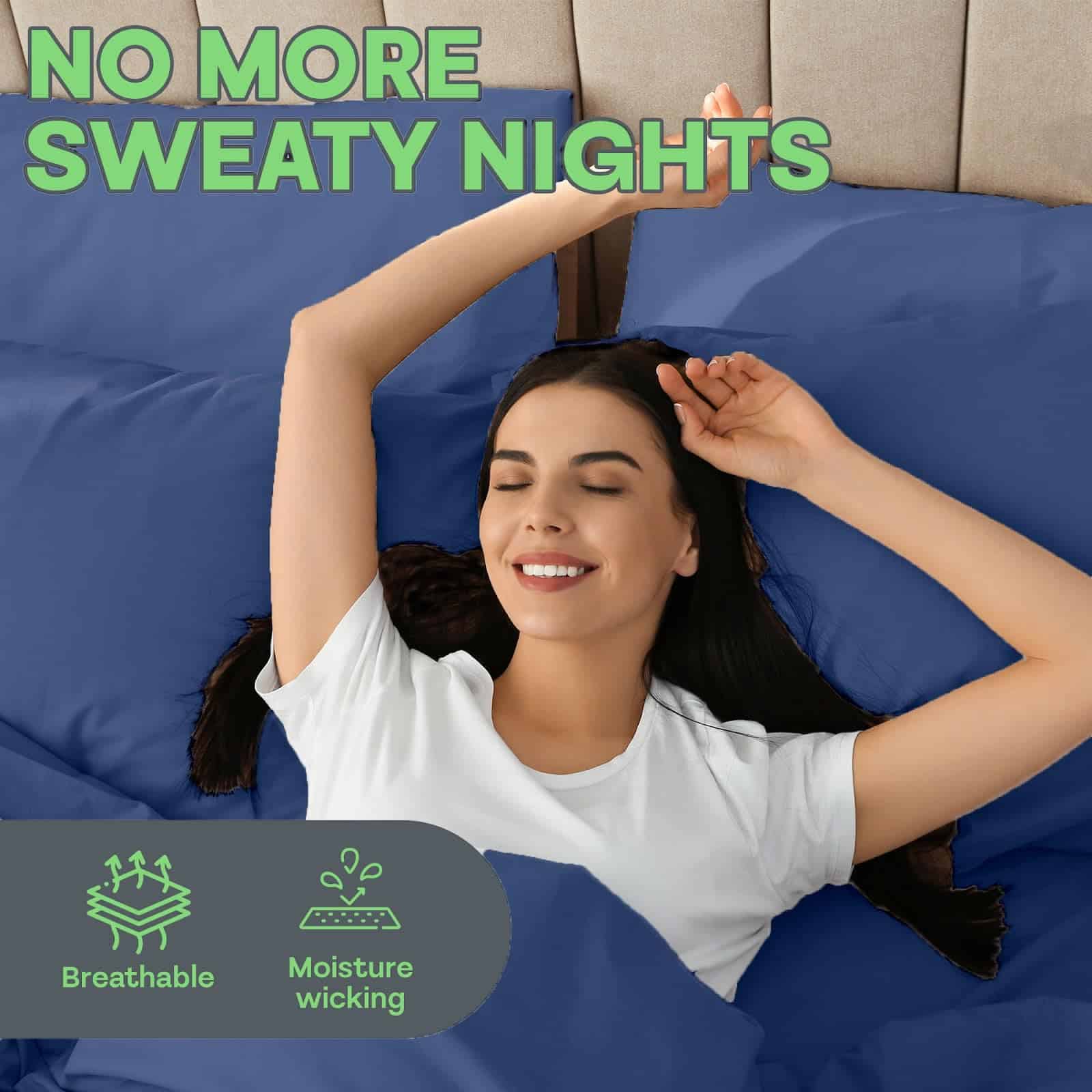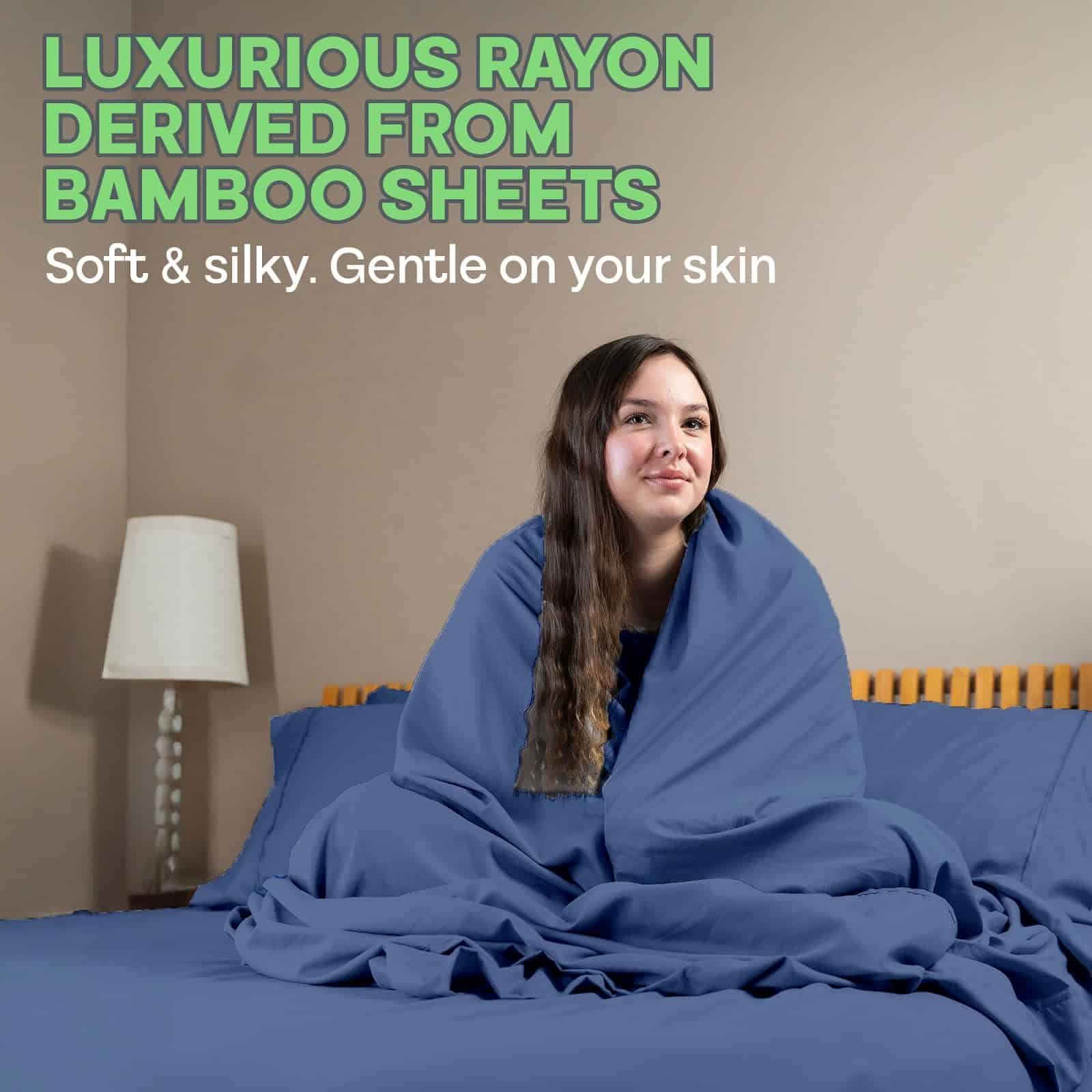 Juego de sábanas de Sacred Thread de 6 piezas de rayón derivado del bambú para una experiencia de sueño increíblemente fresca y lujosa. Nuestras sábanas refrigerantes están diseñadas para mantenerte fresco y cómodo durante toda la noche, absorbiendo la humedad y el calor para minimizar cualquier interrupción en tu sueño. Hechas con un 40% de rayón derivado del bambú y un 60% de poliéster, estas sábanas orgánicas son ideales para personas con piel sensible o experimentando la menopausia. Además de la lujosa sensación de nuestras sábanas veganas, el set incluye una sábana ajustable de rayón derivado del bambú, una sábana plana y cuatro fundas de almohada para completar tu colección de lencería de cama. A diferencia de las sábanas de seda, nuestras sábanas refrigerantes son fáciles de cuidar, simplemente lávelas a máquina en un ciclo suave y frío, y séquelas a baja temperatura para mantenerlas frescas y suaves durante años. Con un ajuste de bolsillo profundo de 18 pulgadas, no tendrás que preocuparte más por que las sábanas ajustables se deslicen. Disponible en una amplia gama de colores vibrantes para combinar con la decoración de tu hogar u hotel.