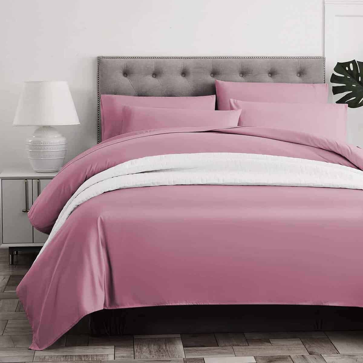 Juego de sábanas queen de 6 piezas – 1 sábana ajustada de 60 por 80 pulgadas con bolsillo de 14 pulgadas de profundidad, 1 sábana plana de 90 por 102 pulgadas, 4 fundas de almohada de 20 por 30 pulgadas