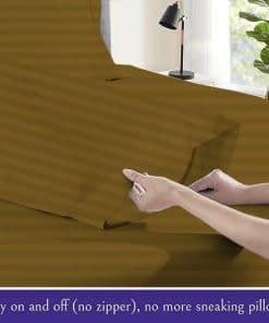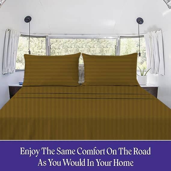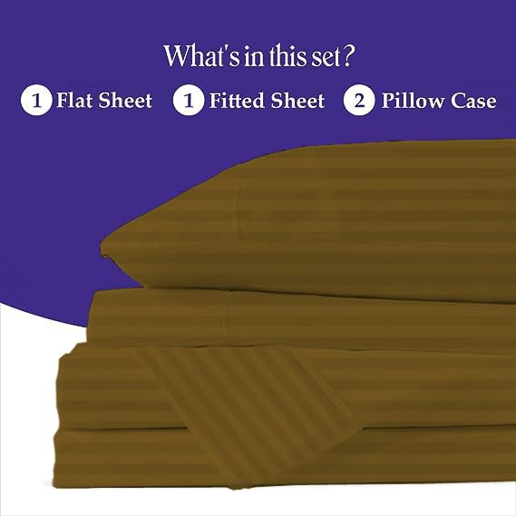 Juego de sábanas Silentnight RV King (72X80) Rayas Taupe 100% Algodón Egipcio Sábanas de Satén, 800 Hilos Suaves y Lisas, Duraderas, 4 Piezas con Bolsillo Profundo de 15 Pulgadas Resistente a Arrugas y Decoloración. Disfrute de la máxima comodidad y suavidad con nuestro juego de sábanas de algodón egipcio de 800 hilos. Cada juego incluye una sábana ajustable, una sábana plana y dos fundas de almohada a juego. El tamaño RV-KING es perfecto para colchones de 72″X80″ con un bolsillo profundo de 15″ para un ajuste seguro. Las rayas de color taupe agregan un toque elegante a su dormitorio. Las sábanas son fáciles de cuidar, lavables a máquina y resistentes a las arrugas y decoloración. Renueve su dormitorio con la calidad y el lujo de nuestras sábanas de algodón egipcio de alta calidad.