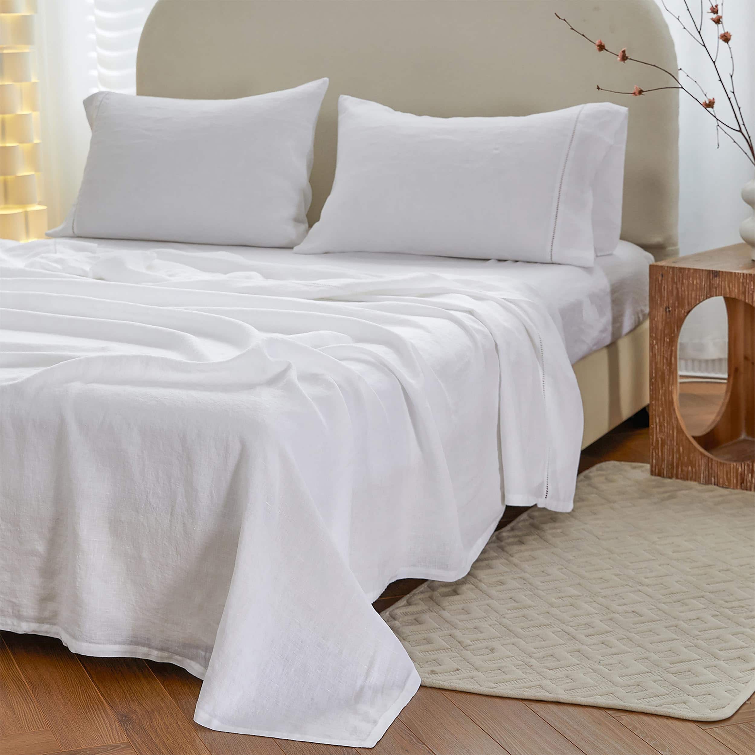 Juego de sábanas Simple&Opulence 100% lino con -Blanco con b