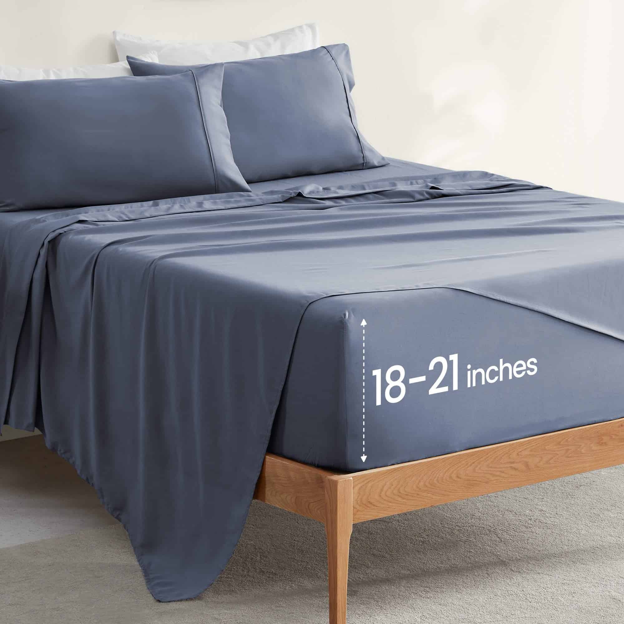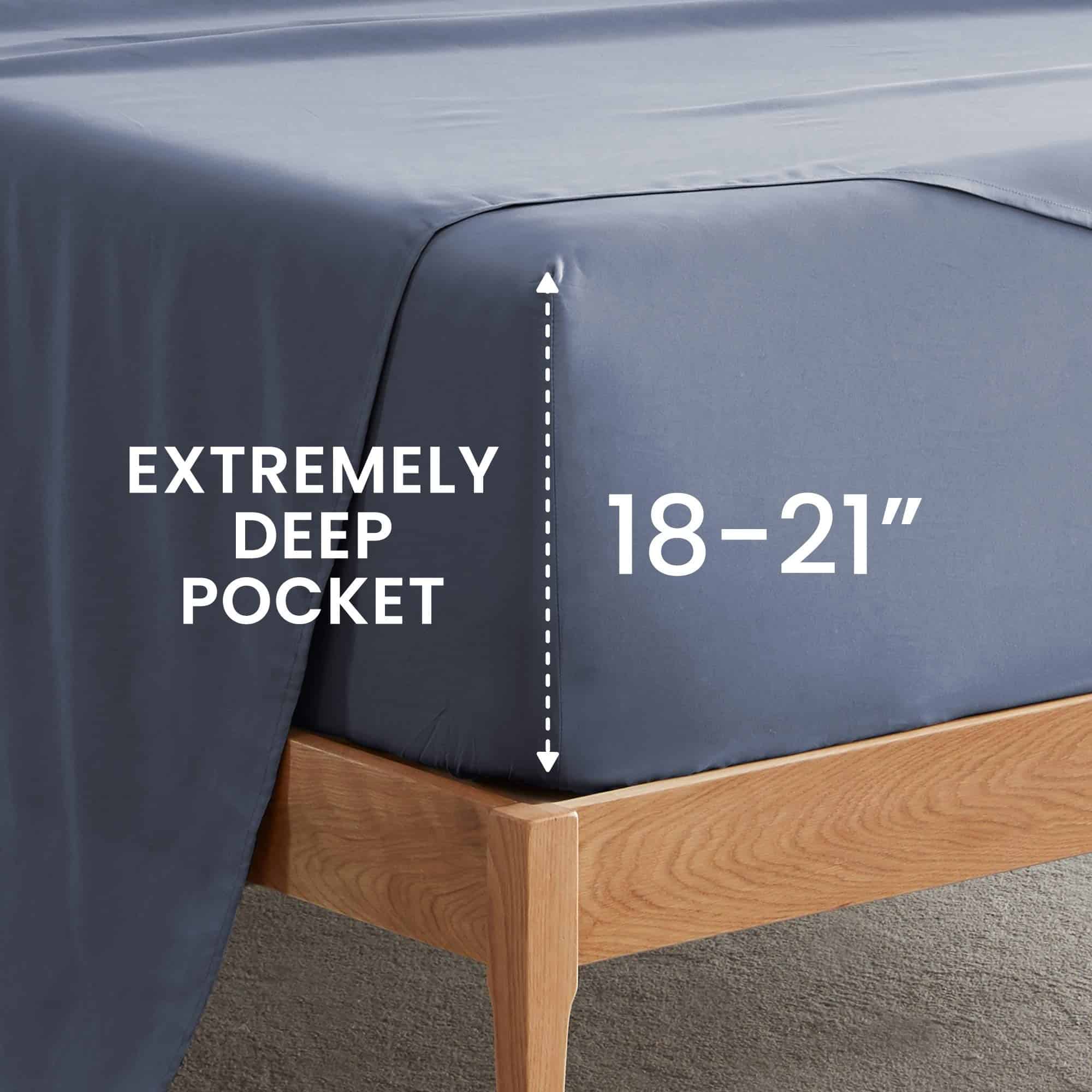 El ajuste ultra profundo de nuestras sábanas es perfecto para colchones profundos, ya que el bolsillo profundo se estira hasta 22 pulgadas, adaptándose a colchones de 18 a 21 pulgadas de profundidad. Esto protege tu colchón del polvo y el sudor, y garantiza un ajuste perfecto sin importar cómo te muevas en la cama. Un descanso profundo y reparador te espera con nuestras sábanas.