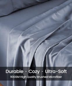 Con nuestros juegos de sábanas de calidad SLEEP ZONE Extra Deep Pocket King de 4 piezas, disfrutarás de un sueño más placentero. Los hilos premium de microfibra de 90 gsm y doble cepillado en ambos lados ofrecen suavidad y comodidad definitivas. Son más suaves, frescos y transpirables, y más duraderos que las sábanas ordinarias. Además, el elegante diseño de color sólido crea una sensación de descanso en tu dormitorio, dejándote renovado y rejuvenecido cada mañana.