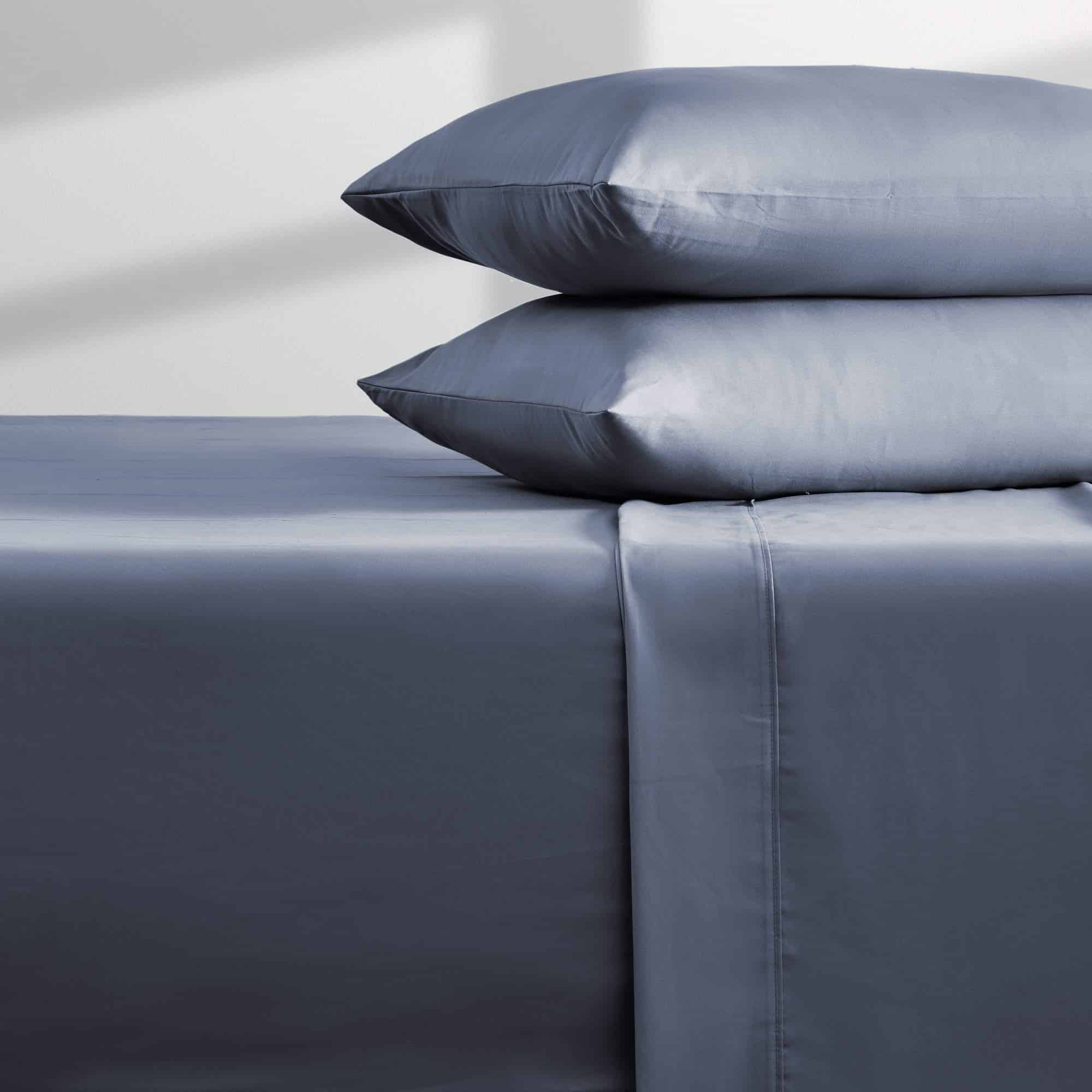 El juego incluye todo lo necesario para tu cama: 1 sábana plana de 102×105 pulgadas, 1 sábana ajustada de 80×78 pulgadas y 2 fundas de almohada de 20×40 pulgadas. Estos productos están certificados MADE IN GREEN por OEKO-TEX, lo que garantiza que han sido probados para sustancias nocivas y fabricados en lugares de trabajo seguros y con impactos ambientales reducidos.