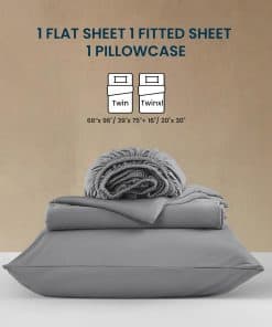 4. JUEGO DE SÁBANAS DE 3 PIEZAS – 1 Sábana plana de 96×66 pulgadas, 1 Sábana ajustable de 75×39 pulgadas, 1 Funda de almohada de 20×30 pulgadas.
