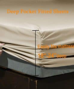 2. Juego de sábanas de lujo para tamaño Queen de 6 piezas – 1 sábana plana 90″x102″, 1 sábana ajustable 60″x80″x21″ con elástico que puede estirarse, 4 fundas de almohada 20″x30″. Bolsillos profundos que se ajustan a colchones de hasta 18″-24″ de profundidad con elástico alrededor de la sábana ajustable. ¡Estas sábanas se ajustan mejor que cualquier otro juego de sábanas! El juego de sábanas está diseñado para adaptarse a casi todos los colchones con una profundidad que no exceda los 24″. Con un estiramiento adicional y elástico duradero, la sábana ajustable está diseñada para mantenerse ajustada y adaptada a tu colchón.