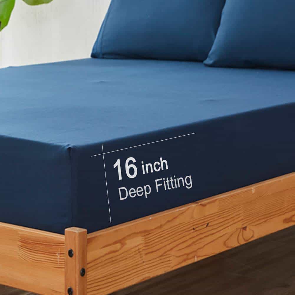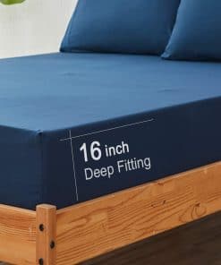2. Juego de sábanas de lujo para cama Twin XL de 3 piezas – 1 sábana plana 66″x102″, 1 sábana ajustable 39″x80″x16″, 1 funda de almohada 20″x30″. Bolsillos profundos que se ajustan a colchones de hasta 16″ de profundidad con elástico alrededor de la sábana ajustable. ¡Estas sábanas se adaptan mejor que cualquier otro juego de sábanas! El juego de sábanas está diseñado para adaptarse a casi todos los colchones con una profundidad que no exceda de 16″. Con un estiramiento adicional y un elástico duradero, la sábana ajustable está diseñada para permanecer ajustada y ajustada a su colchón.