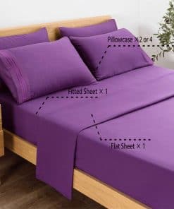 El juego de sábanas SONORO KATE está diseñado para brindarle la mejor experiencia de sueño, fabricado con 100% microfibra de poliéster cepillado y las últimas técnicas de hilado para ofrecerle suavidad y sedosidad superiores. Con un tamaño estándar King Size de lujo de 6 piezas, este juego incluye una sábana plana, una sábana ajustable y cuatro fundas de almohada, todo diseñado para adaptarse a la mayoría de los colchones con una profundidad máxima de 16 pulgadas. Las sábanas SONORO KATE son resistentes a las manchas, al encogimiento y a las arrugas, lo que las convierte en la elección perfecta para un sueño cómodo y reparador. Además, vienen en un elegante color morado que añadirá un toque de lujo y elegancia a su dormitorio. ¡No espere más para disfrutar de la calidad y comodidad que le brindan estas sábanas de lujo!