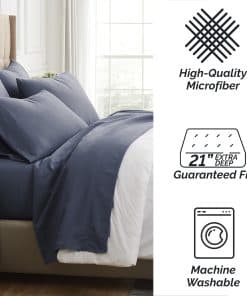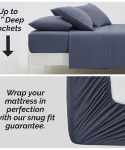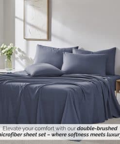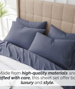 Ropa de cama premium sin el etiqueta de precio elevado: Eleva la decoración de tu dormitorio con este juego de sábanas de microfibra ultra suave tamaño California King, si deseas sábanas estilo hotel, sábanas ultra suaves o sábanas para cama California King de bolsillo profundo que no encojan. Hemos asegurado que nuestras sábanas azul California King permanezcan bien ajustadas. Nuestras sábanas de 21″ de bolsillo profundo tienen un elástico alrededor para envolver alrededor de una cama tamaño California King o un topper de colchón tamaño California King. Suavidad inigualable: estas sábanas de cama California King son ideales para todas las estaciones, ya que se vuelven más suaves con el tiempo, superando a otras sábanas azul oscuro y juegos de sábanas para cama California King de bolsillo profundo. Mejora tus sábanas California King ahora! Sábanas de lujo resistentes a la decoloración y de bajo mantenimiento: este juego de cama California King es apto para lavadora, secadora y mantiene su color y suavidad con el tiempo, superando a otras versiones de sábanas California King con bolsillo profundo y sábanas de microfibra tamaño king. Un juego completo de sábanas de bolsillo profundo tamaño California King: este juego de sábanas de bolsillo profundo de 21 pulgadas para cama California King incluye 1 sábana ajustable (72″ x 84″), 1 sábana plana (112″ x 102″) y 4 fundas de almohada tamaño king (20″ x 40″), para una mejora cohesiva del juego de ropa de cama estilo hotel.