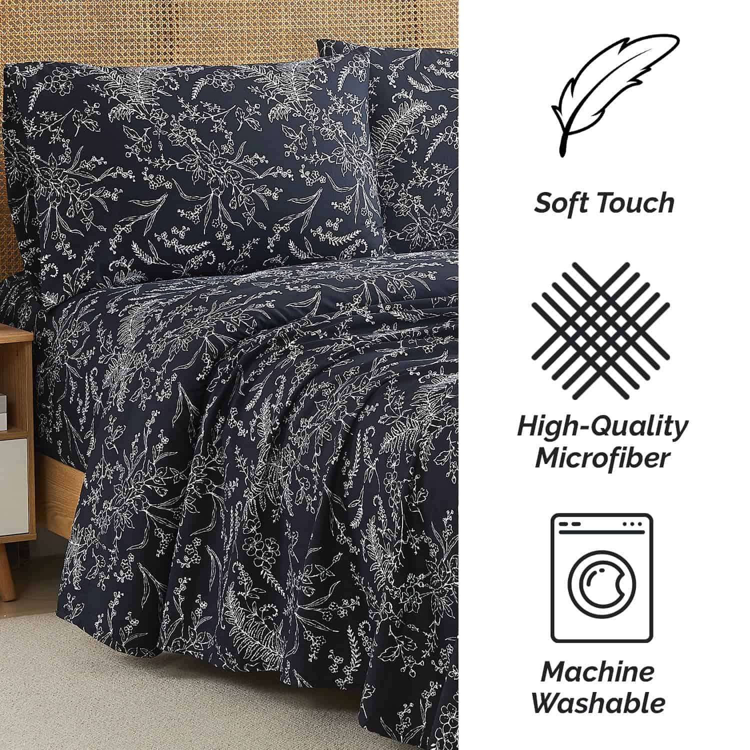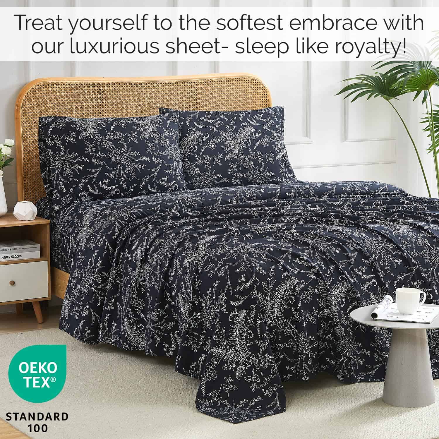 2. Artesanía de Alta Calidad y Tela Suave Característica: Te pasas todo el día trabajando duro. Mereces un sueño de calidad en Juegos de Sábanas extremadamente suaves, cómodos y lisos. Nuestras Sábanas son fáciles de cuidar, transpirables, ligeras, y de doble cepillado para mayor suavidad, sin encogerse y resistente a la decoloración. Te despertarás fresco y bien descansado.