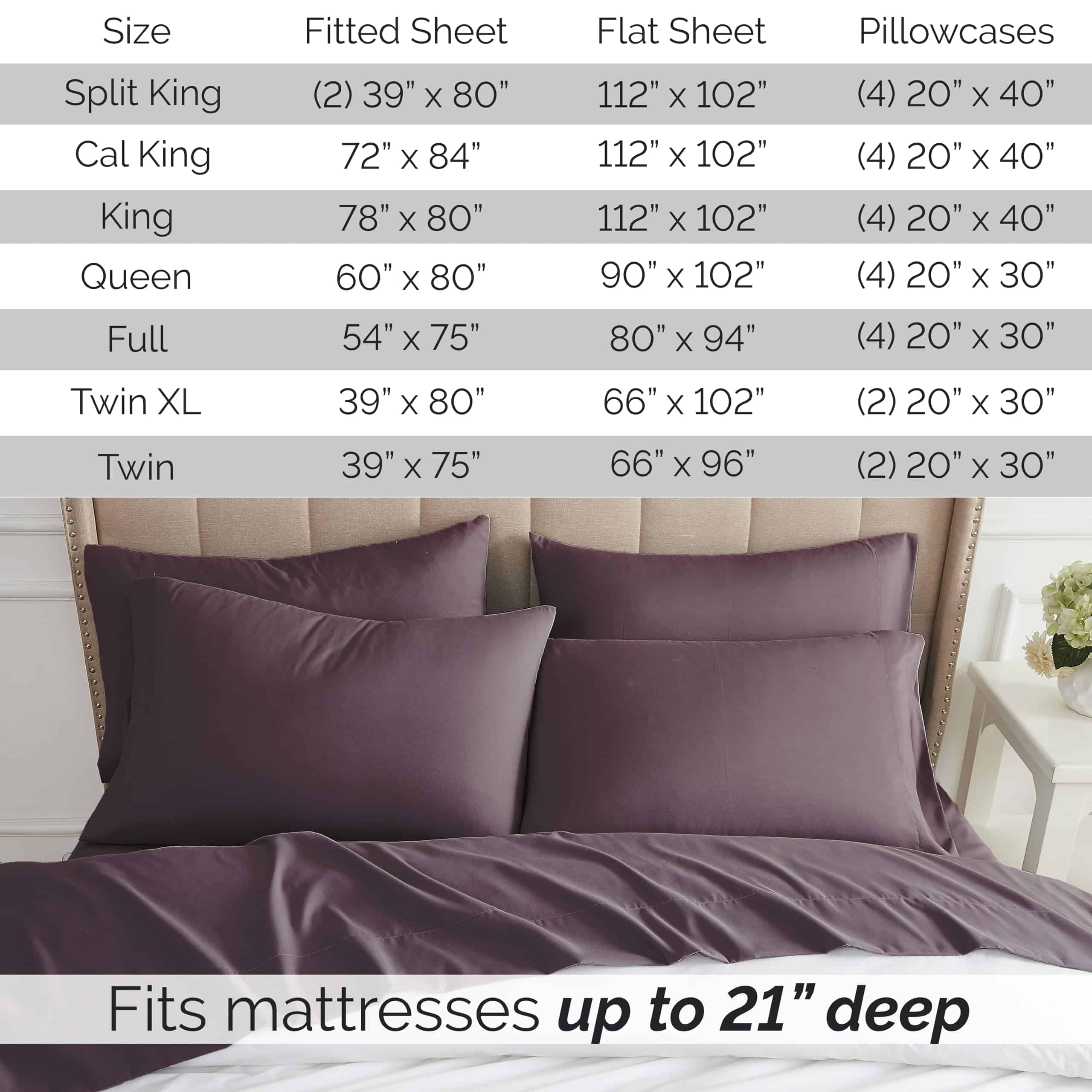 2. JUEGO DE SÁBANAS DE CAMA INDIVIDUAL EXTRA PROFUNDA: Nos hemos asegurado de que nuestras sábanas moradas de cama individual se adapten a tus necesidades. Nuestras sábanas de 21″ moradas de cama individual tienen un elástico resistente alrededor de todo el dobladillo para envolver una cama individual o un cubrecolchón individual.