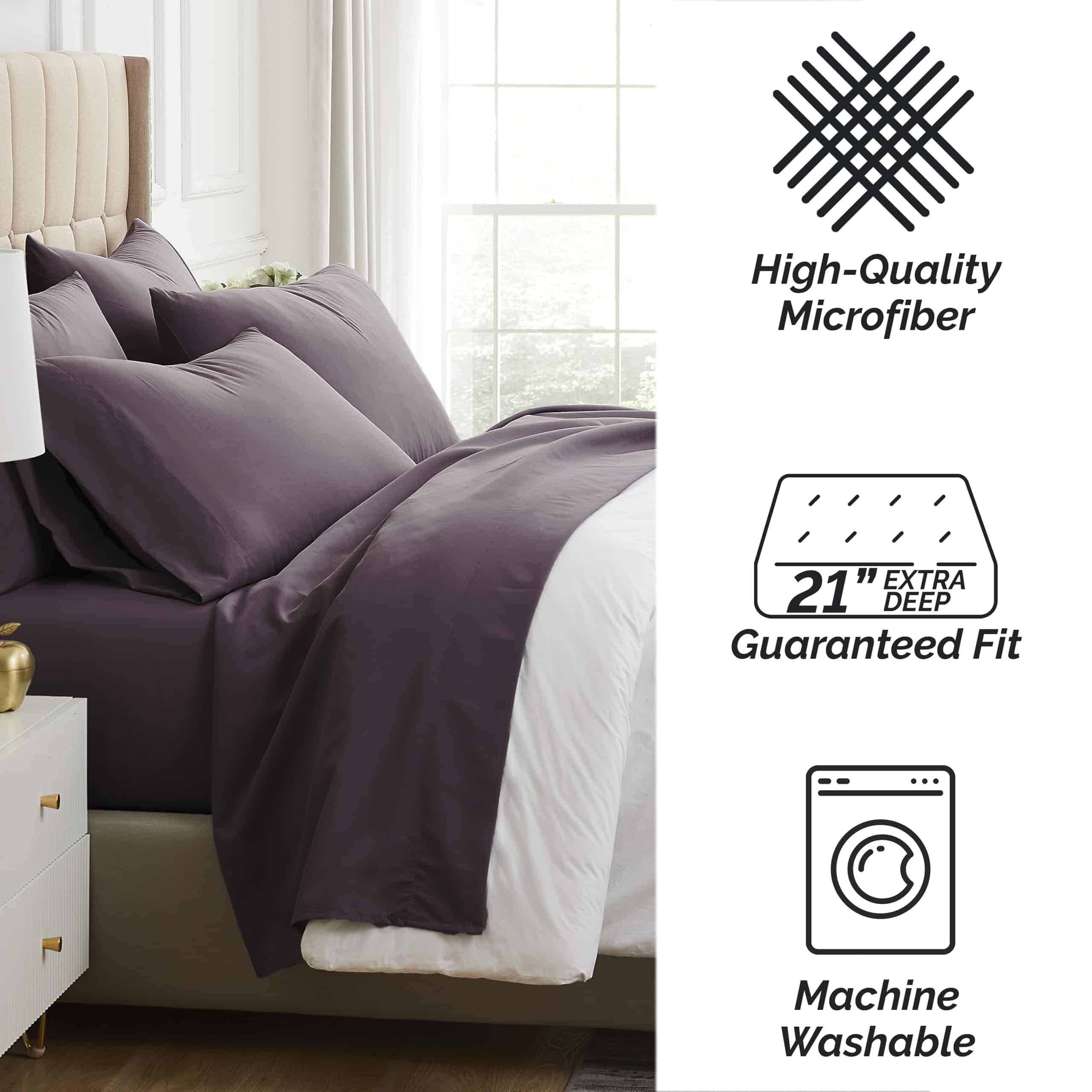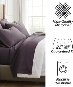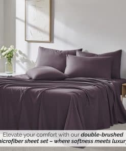 4. JUEGO DE SÁBANAS DE MICROFIBRA RESISTENTE A LA DECOLORACIÓN Y DURADERO: Lavable a máquina y apto para secadora, nuestras sábanas de microfibra para cama individual se mantienen frescas mientras son más fáciles de cuidar que otro juego de cama morado o sábanas de cama individual con instrucciones de cuidado especiales.