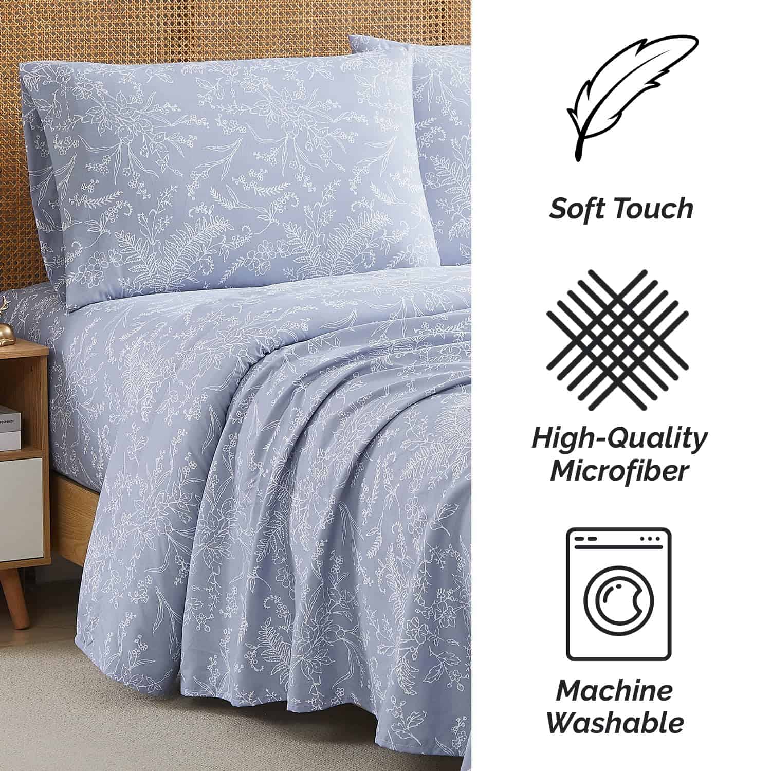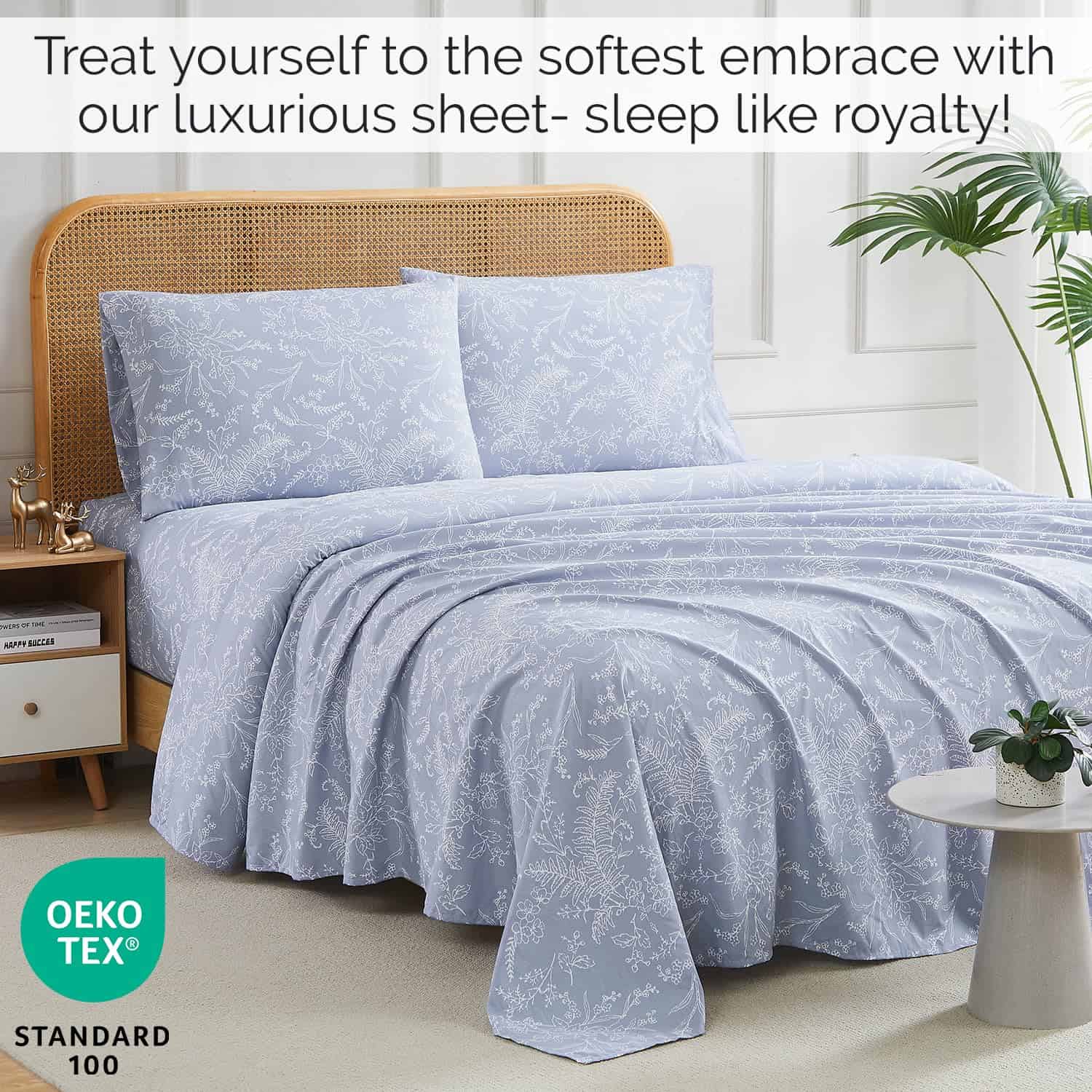 4. Fácil cuidado y resistente a la decoloración: Nuestras sábanas son resistentes a la decoloración y al desgaste. Saldrán de la secadora con un aspecto fresco cada vez. Y sí, también son resistentes a las arrugas. Estos juegos de sábanas están fabricados con nuestro tejido microfibra lujoso doble cepillado de 100 GSM (gramos por metro cuadrado) de calidad superior, que proporciona una suavidad y suavidad sustancialmente más altas, mientras que la mayoría de las sábanas están hechas de 75-90 GSM.