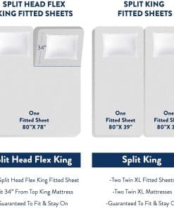 Hecho de 600 hilos 100% fibras de algodón egipcio, son increíblemente suaves y suaves. ¡Ningún otro juego de sábanas se compara! Incluye 1 sábana bajera King Flex Split Head 1 Split Head: 78″ de ancho por 80″ de largo, dividido 34″ desde la parte superior, 1 sábana plana King (108″ x 102″), 2 fundas de almohada King (20″ x 40″). La sábana bajera totalmente elástica está diseñada para abrazar su colchón de 14 pulgadas de profundidad, hasta 18 pulgadas de profundidad. Se adapta a colchones de hasta 14″ – 18″ de profundidad con elástico alrededor de la sábana bajera. Instrucciones de cuidado: Lavar a máquina en agua fría con colores similares. Secar a baja temperatura. Nuestra ropa de cama está respaldada por un increíble servicio al cliente; estamos dedicados a asegurarnos de que tenga una excelente experiencia, desde el momento en que realiza su pedido hasta después de comenzar a usar sus nuevas sábanas. ¡ORDENE AHORA, no hay riesgo! Nuestros diseños de alta calidad combinan con cualquier decoración y son la idea de regalo definitiva para hombres y mujeres, mamás y papás, el Día de San Valentín, el Día de la Madre, el Día del Padre y Navidad. Lo mejor para cualquier habitación de su casa: dormitorio, invitados, habitación de niños, casa de vacaciones. Lavar a máquina en agua fría con colores similares. Evite lavar con colores oscuros. Secar a baja temperatura. No usar lejía.