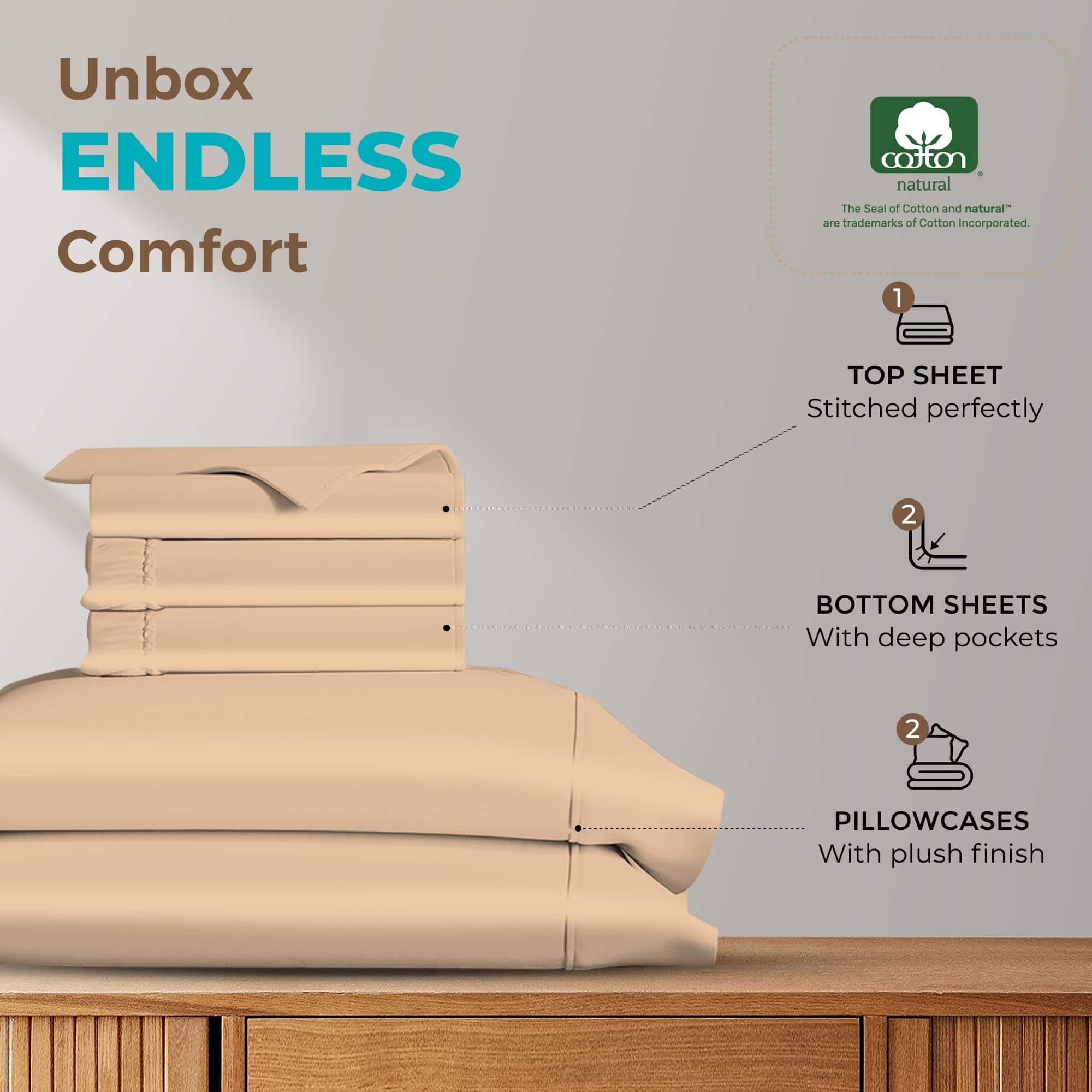Juego de Sábanas Split King 100% Algodón -Taupe