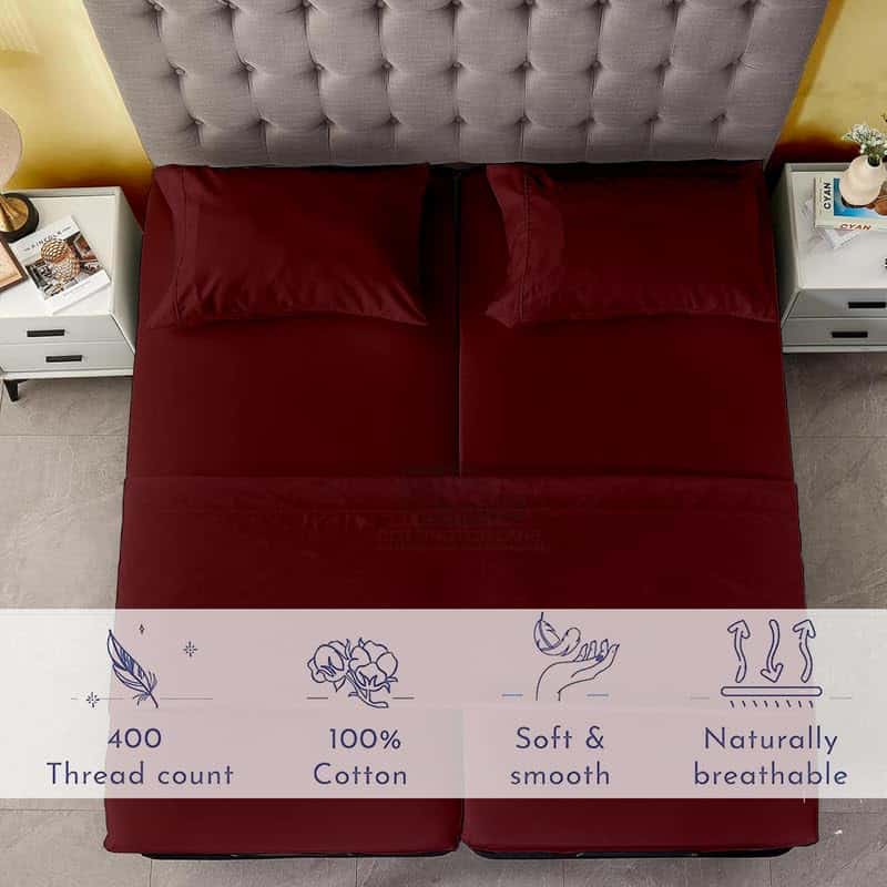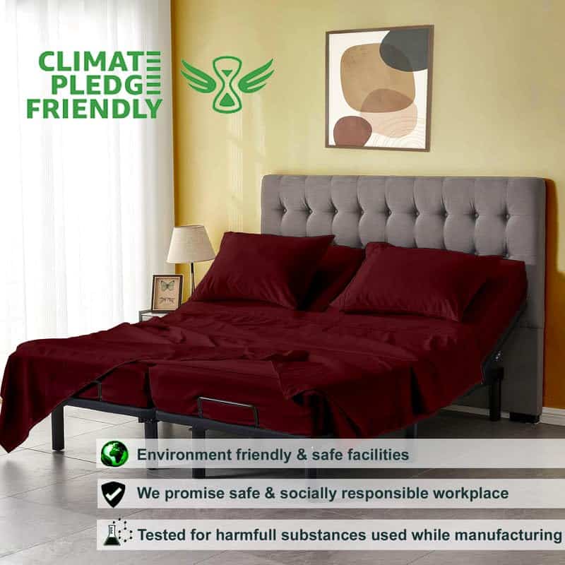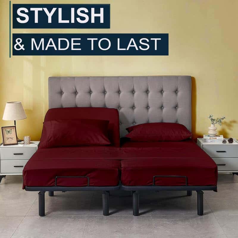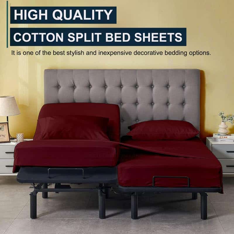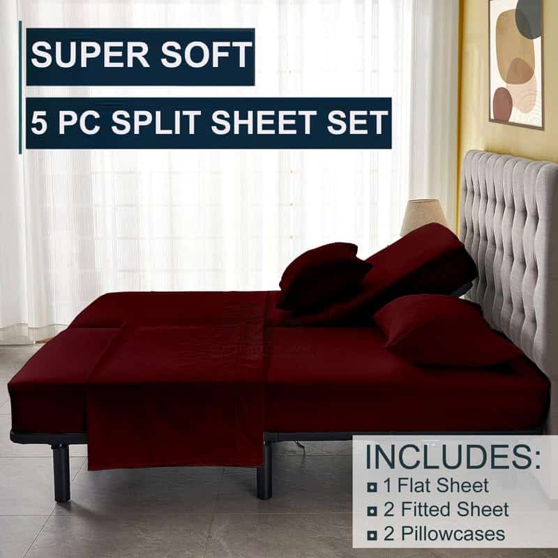 Juego de sábanas Split King de 5 -Borgoña Sólido