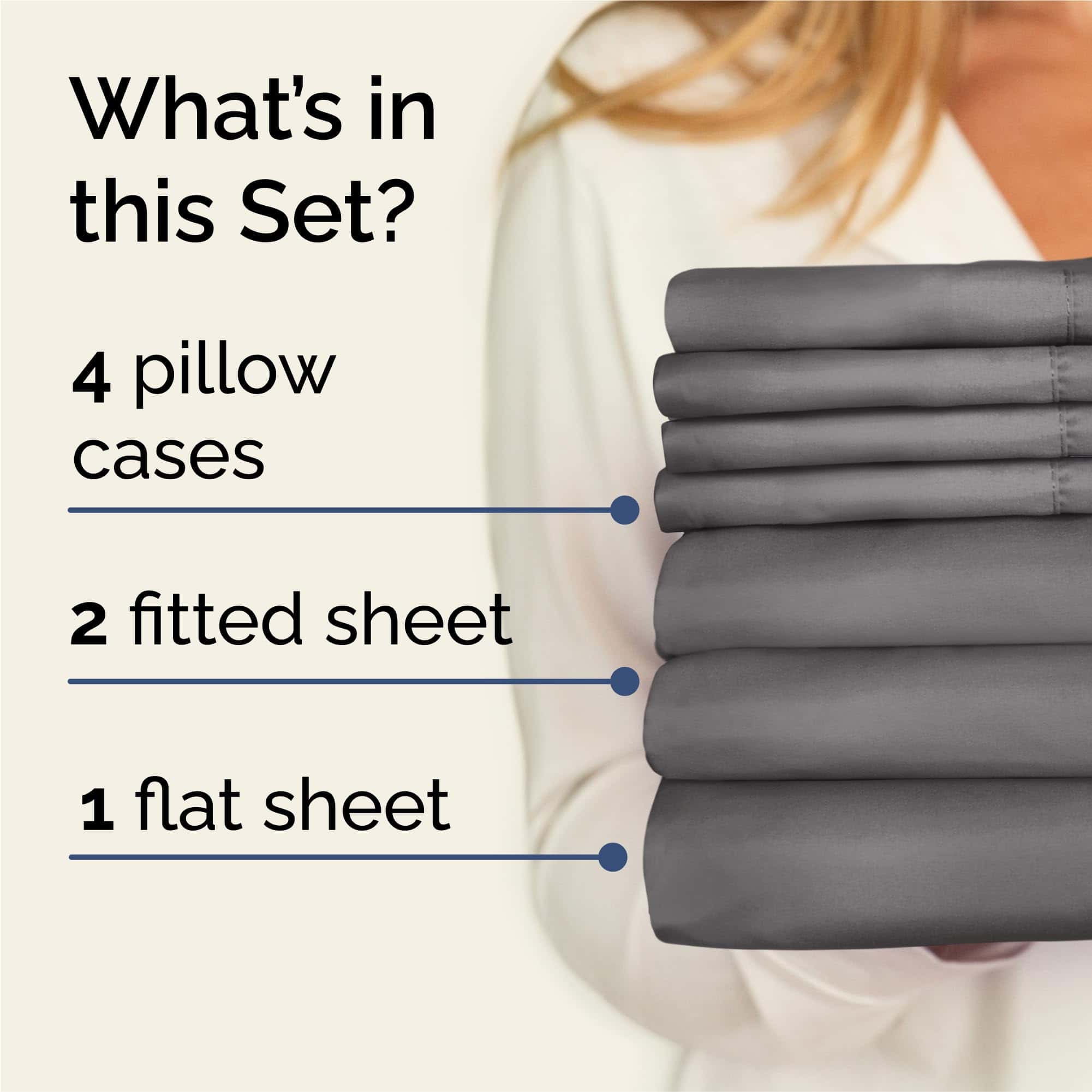 Juego de Sábanas Split King de 7 Piezas – Sábanas -Gris Oscu