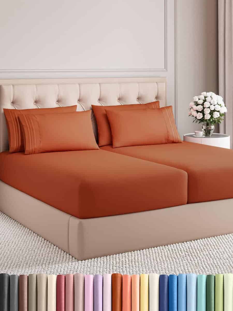 Juego de Sábanas Split King de 7 Piezas – Sábanas -Terracota