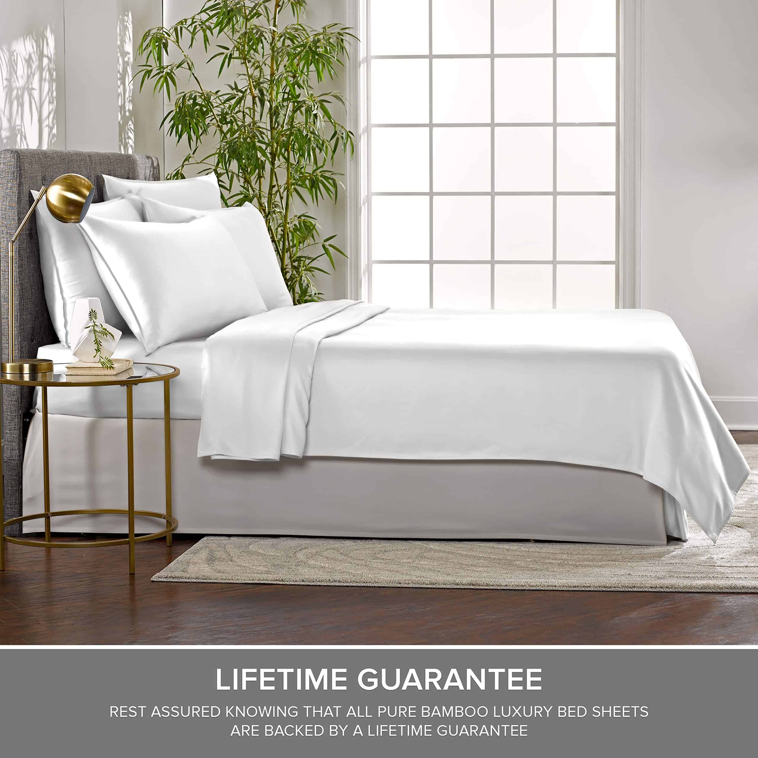 Crafted from the finest quality luxuriously soft 100% Organically Grown Viscose derived from Bamboo, and are OEKO-TEX Standard 100 Certified and tested to be free from over 100 harmful substances, ensuring that it is safe and healthy for your family. Our bed sheets are never blended with other fibers or fabrics unlike most competitors. Includes 2 fitted sheets (38″x80″), 1 flat sheet and 2 envelope-style pillowcases with overlapping closure. The pillowcases and flat sheet feature quality sewn double-stitched seams to ensure long-lasting durability and easy care with cold water washing, while offering a sensuous silky feel that grows luxuriously softer with every wash. DOES NOT FIT A SPLIT TOP MATTRESS. Viscose derived from bamboo fabric is naturally thermo-regulating to keep you cool and relaxed while sleeping and providing all season comfort. The moisture-wicking properties of our resort-grade bedding is perfect for hot sleepers or those with sensitive skin while indulging in the ultimate luxurious softness. Features fitted sheets that have a fully elasticized border to ensure a snug fit for any mattress up to 16 inches thick. All bedding is made from 300 thread count sateen weave fabric for a softer, smoother and more silky feel than even the highest thread count cotton sheets. 300 thread count is the optimal choice for pilling resistance as higher thread counts mean thinner and weaker fibers. Every bedding purchase is backed by a risk-free Lifetime Guarantee against defects in materials and craftsmanship. Sleep soundly on these soft as silk sheets, knowing that our sheets are made from responsibly sourced materials. Designed in Florida and Imported from China. All fabric has been subjected to rigorous testing standard for flammability (Passed/ASTM F963-A6), heavy metals (Passed/ASTM E1479-16), and phthalates (none detected per CPSC CH C1001-09.3)